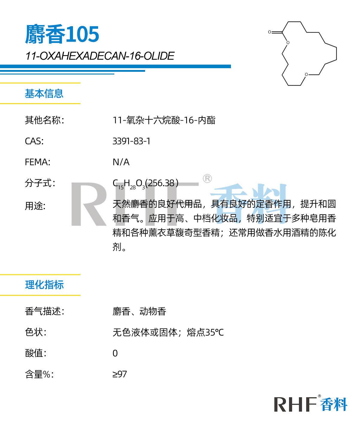 Rhf Fragrance 105 Musk 3391-83-1 Fragrância Animal Fixador Realça Aroma para Fabricação de Perfume Musk R1