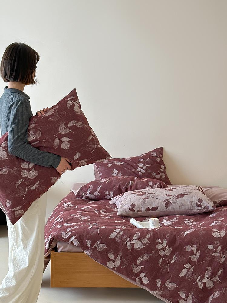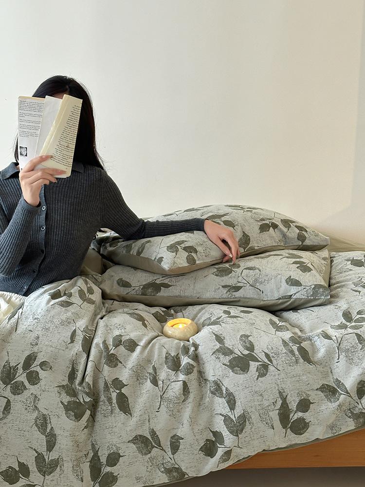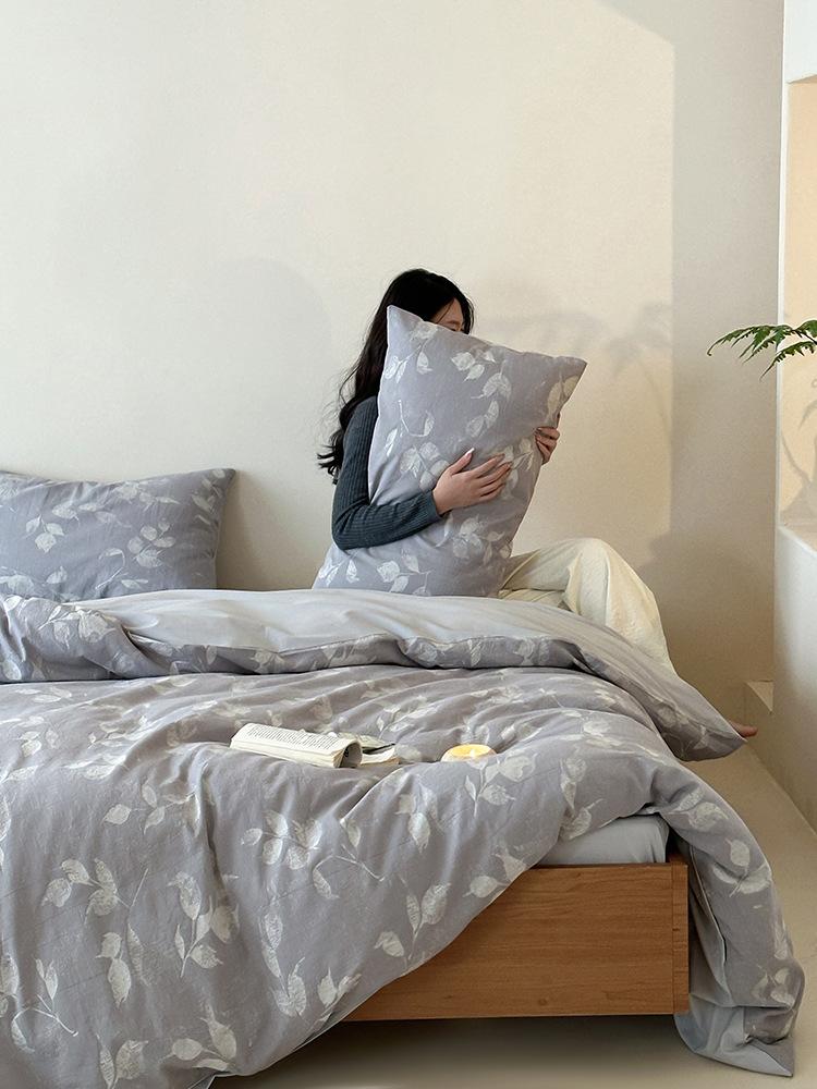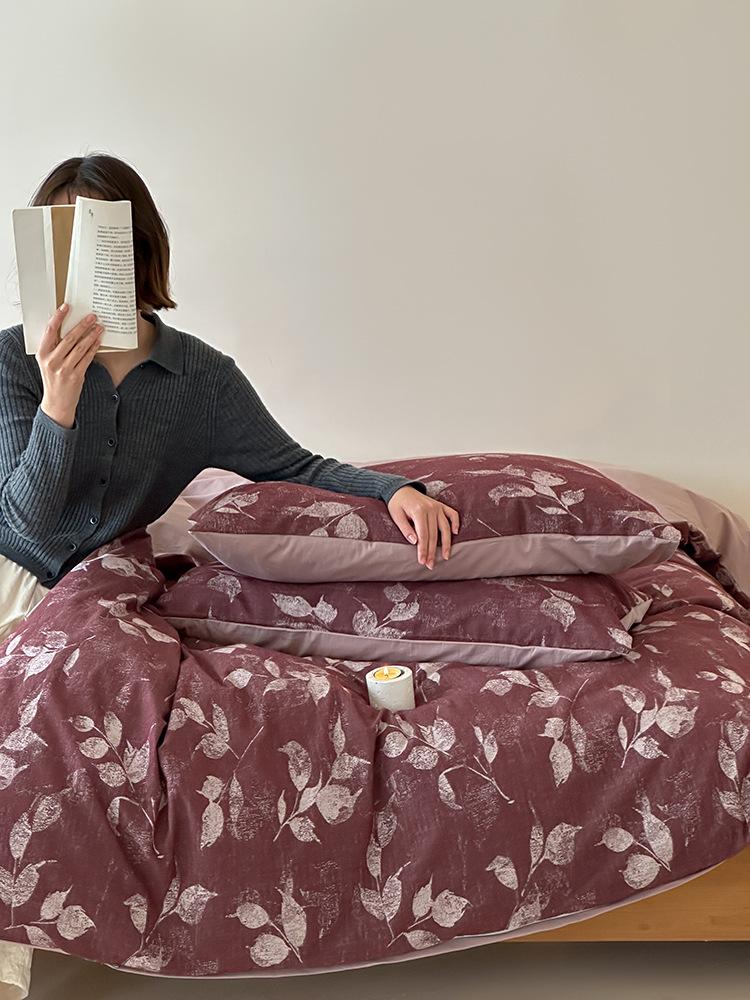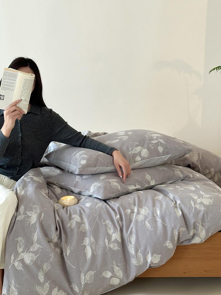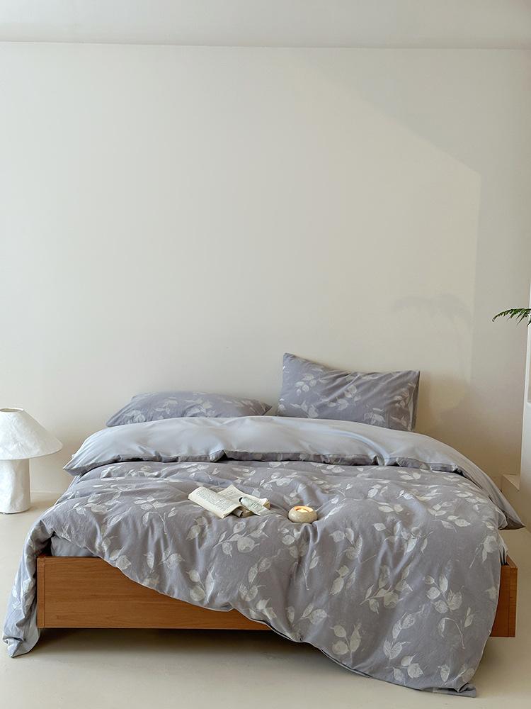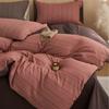 Conjunto de Quatro Peças de Algodão Puro Jacquard Tingido com Fio Estilo Retrô Algodão Lavado Capa de Edredom Lençóis Roupa de Cama Preguiçosa
