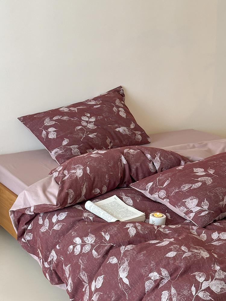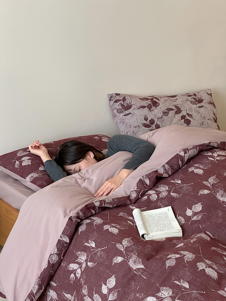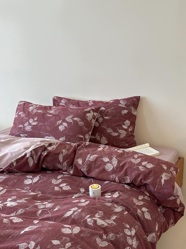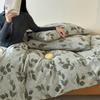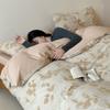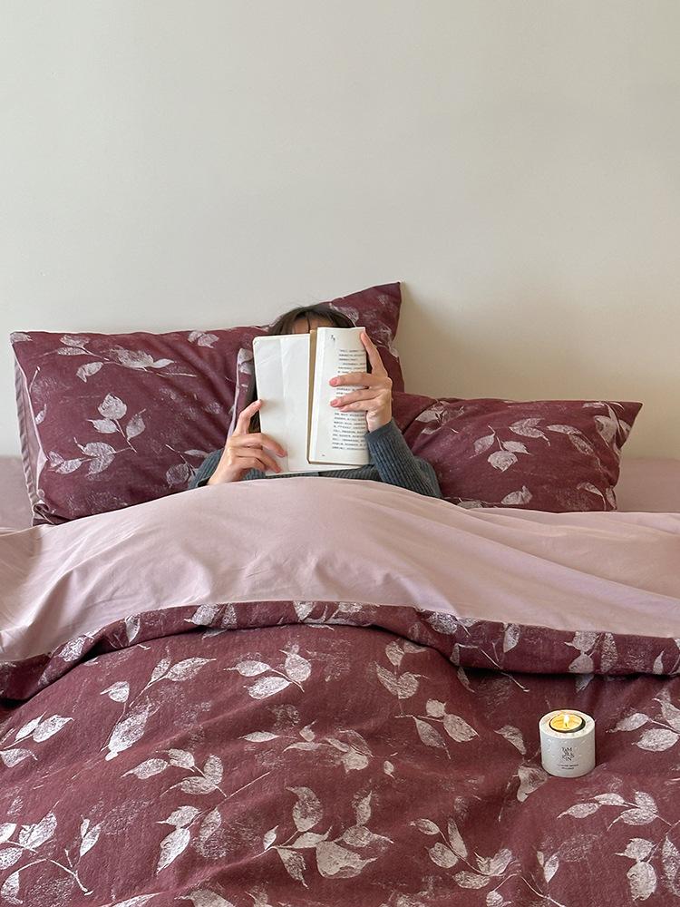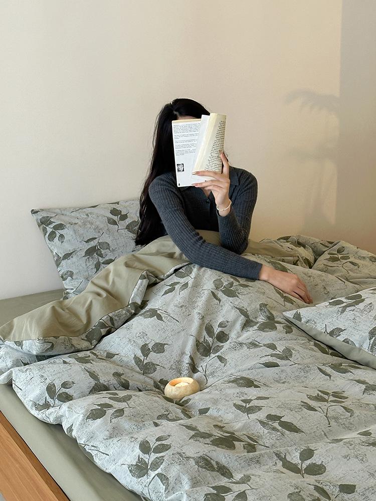 Conjunto de Quatro Peças de Algodão Puro Jacquard Tingido com Fio Estilo Retrô Algodão Lavado Capa de Edredom Lençóis Roupa de Cama Preguiçosa