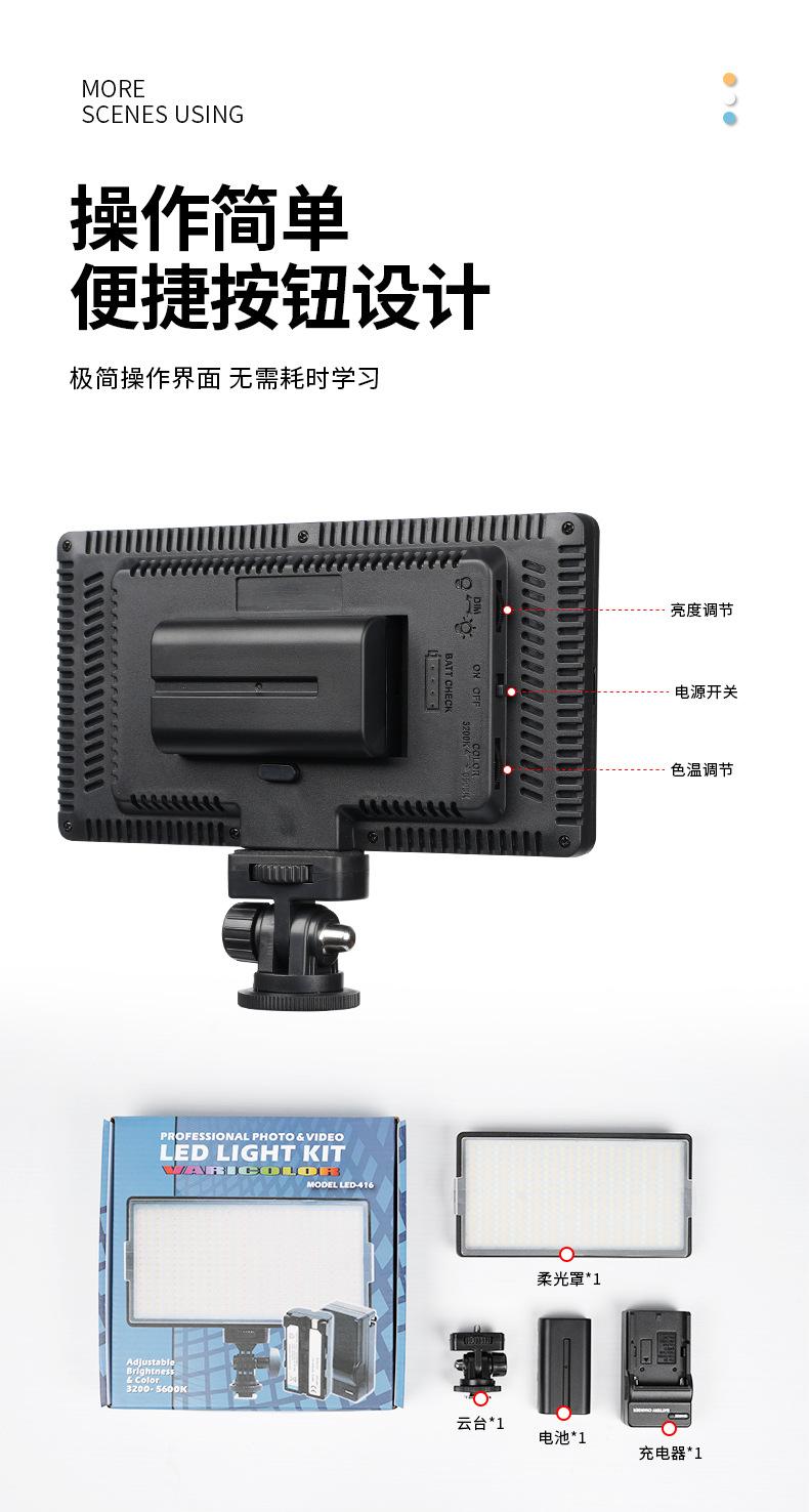 Luz de Preenchimento para Fotografia Led416 Luz de Fotografia Plana Conveniente LED Luz Portátil para Fotografia Externa Luz Plana para Beleza ao Vivo
