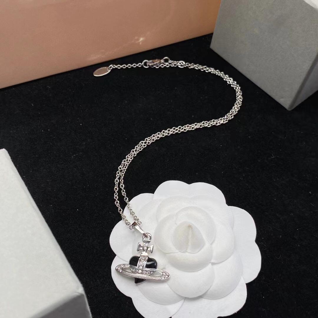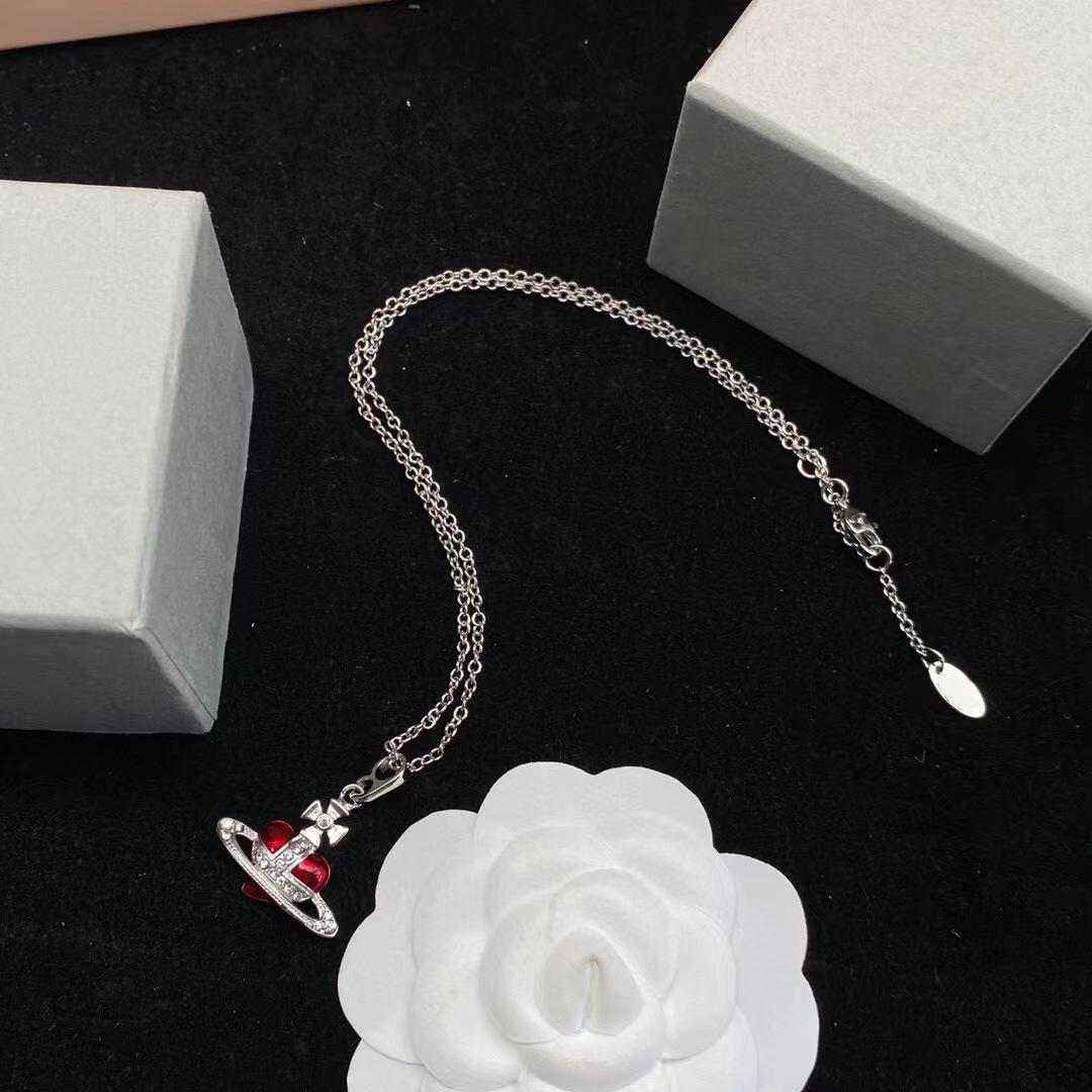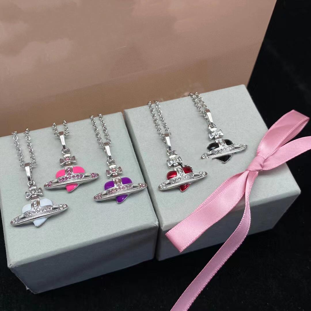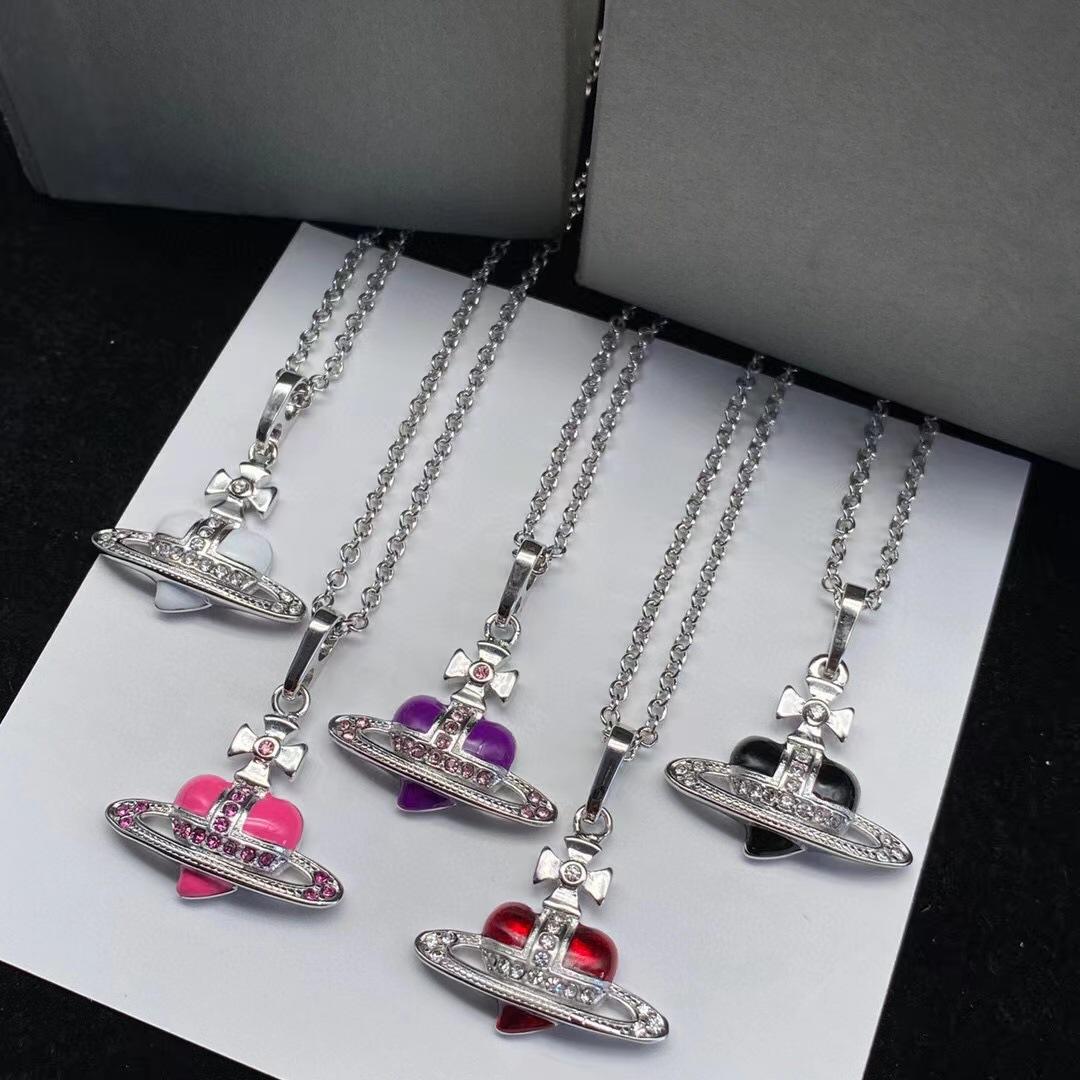 Transmissão ao Vivo Venda Quente Colar Coração de Pêssego Imperatriz Vivian Colar Esmaltado Feminino Tendência Elegante Conjunto Versão Alta