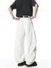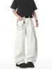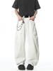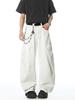 Verão Novo Estilo Americano Bolso Grande Jeans Branco Calças Cargo Casuais Soltas da Moda Masculina Calças Retas de Perna Larga