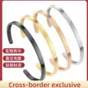 Pulseira Aberta Transfronteiriça Europeia e Americana de Aço Titânio Gravada Tipo C 4mm Pulseira Aço Inoxidável Não Desbota Joia de Mão Atacado Simples