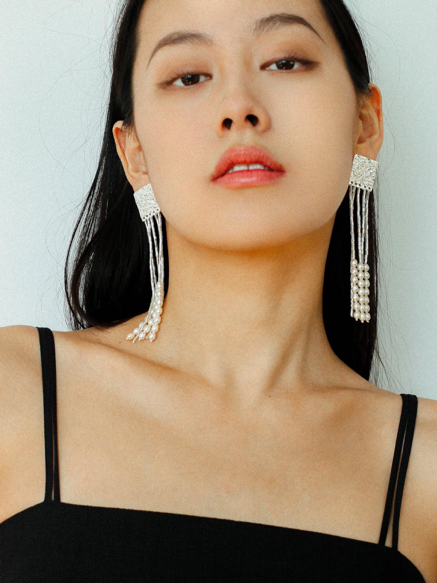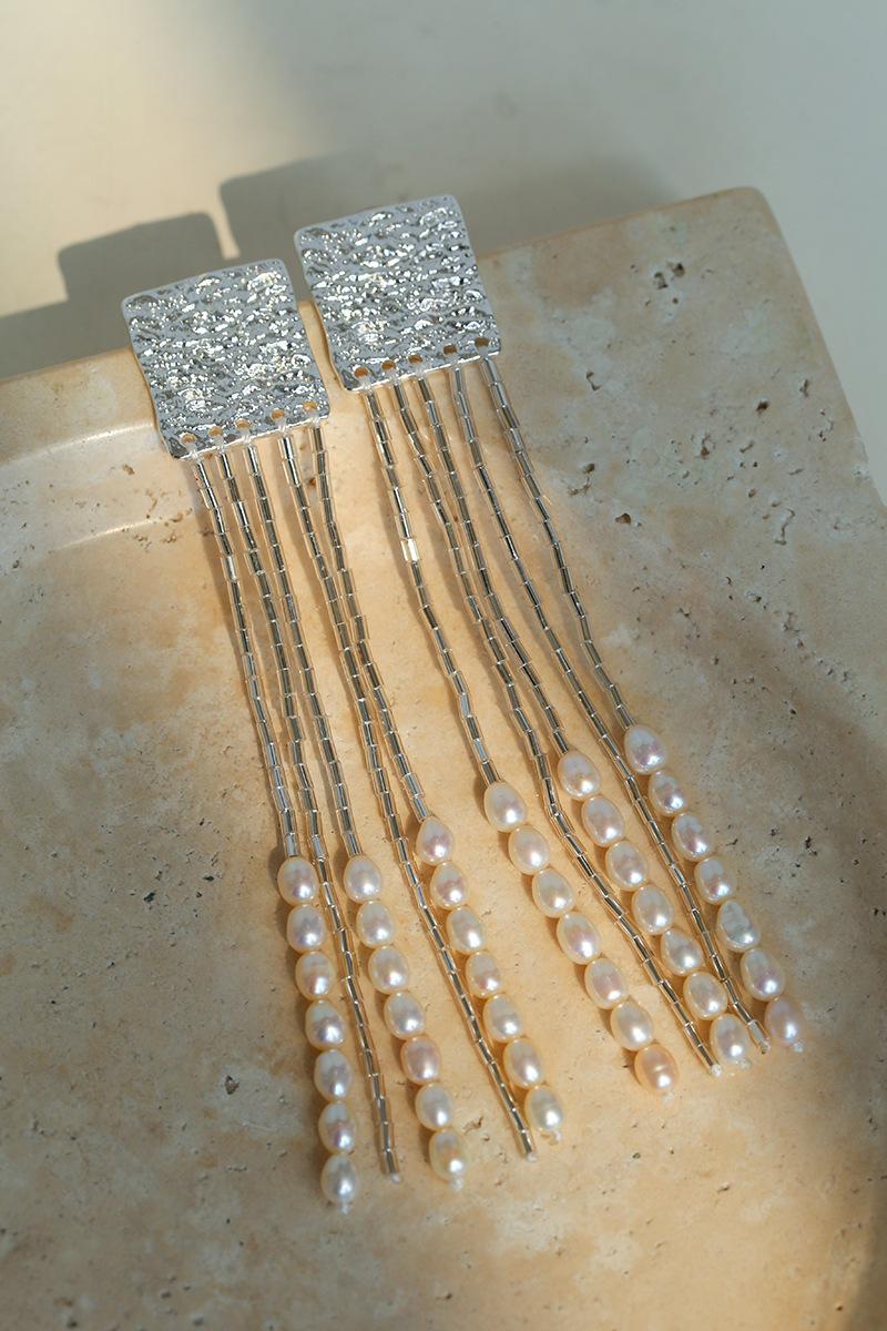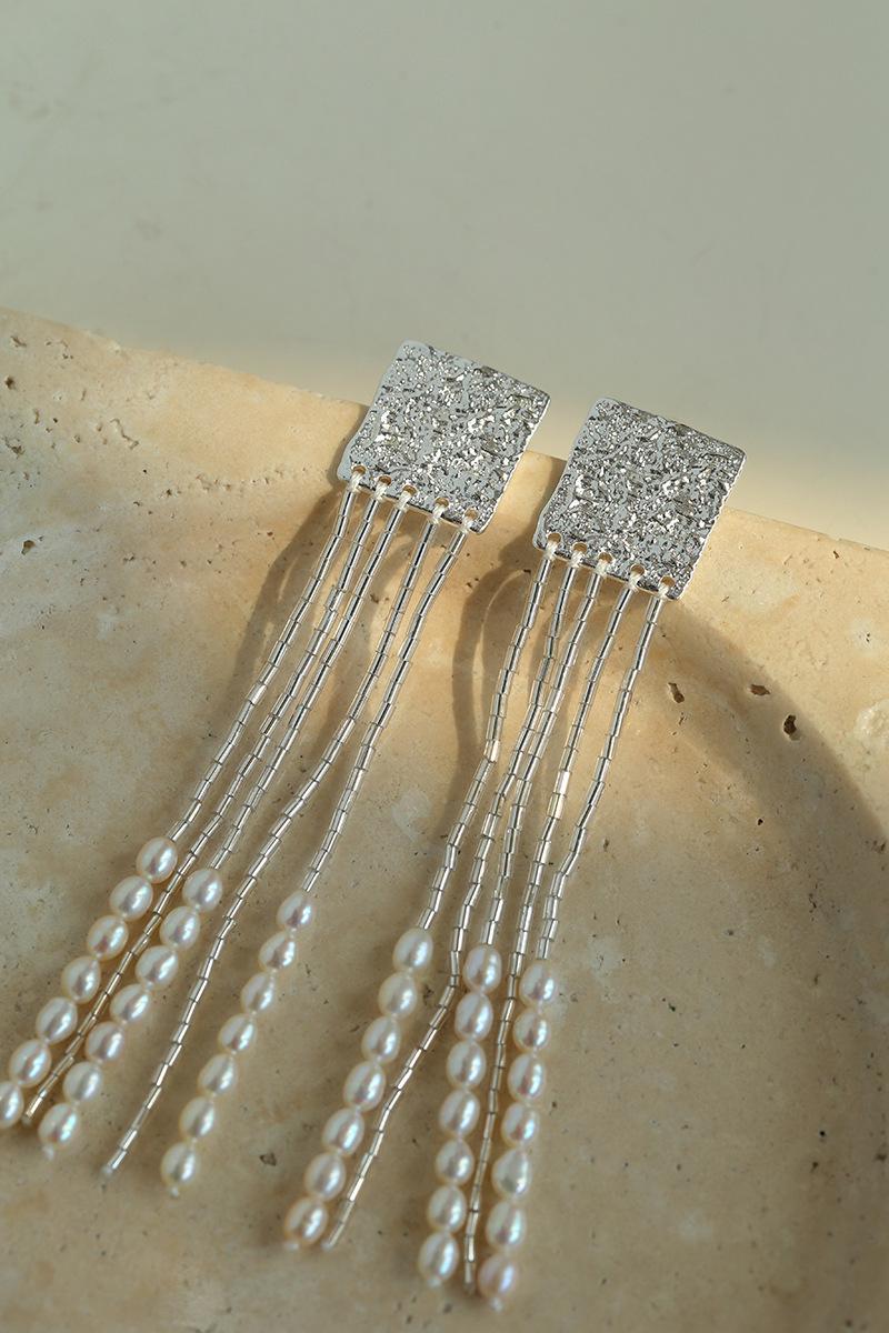 Brincos tubulares quadrados de pérola de lava estilo europeu e americano design de moda de nicho feminino brincos longos prateados