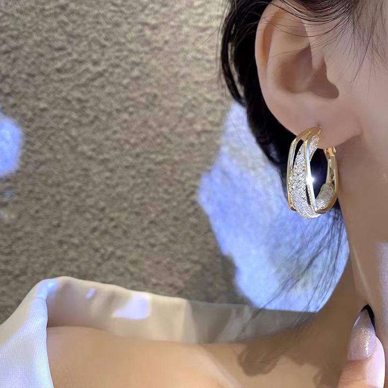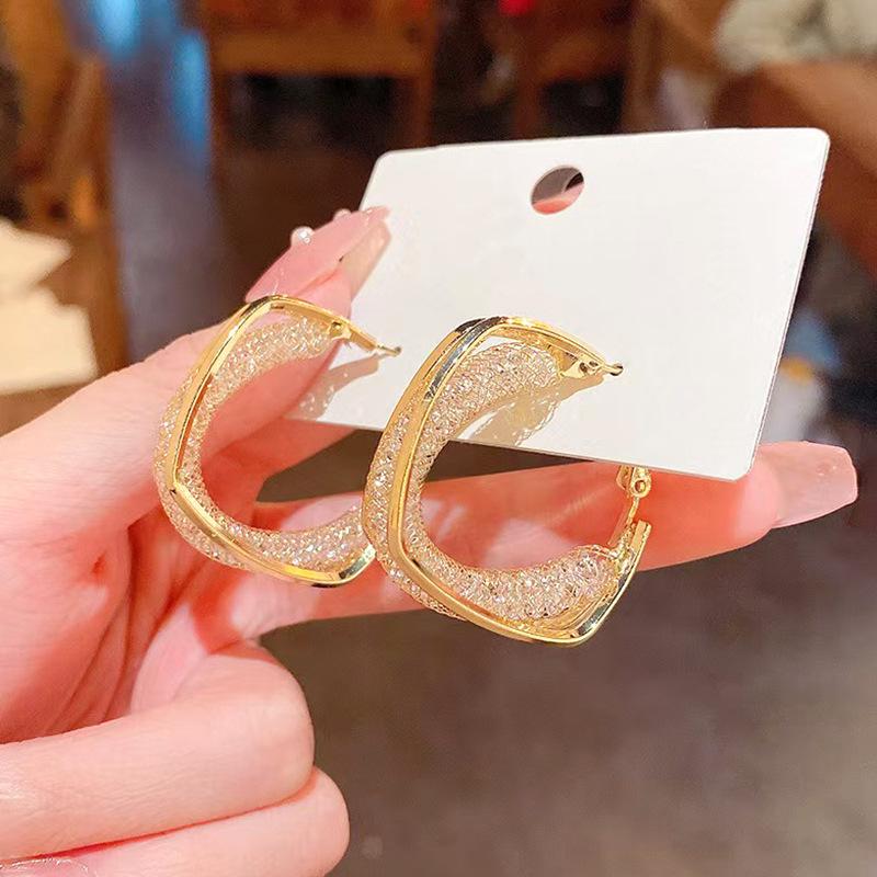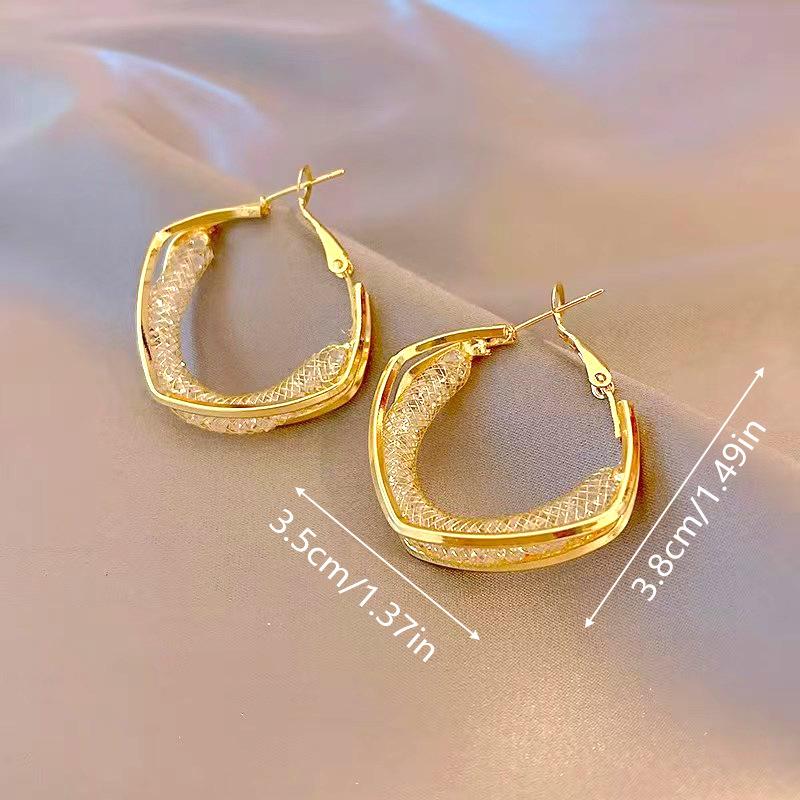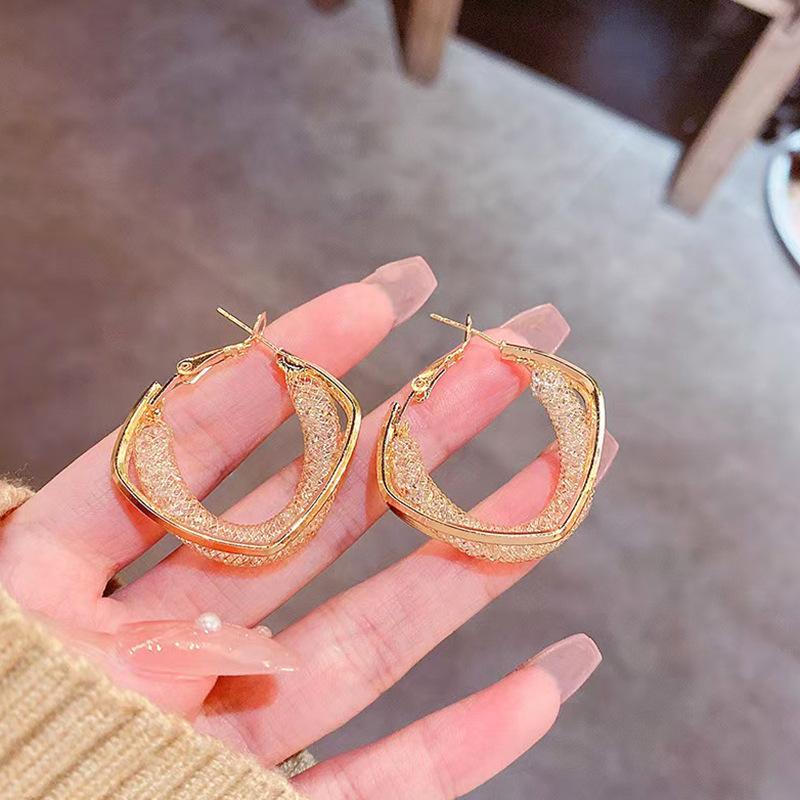 Compre Estilo Coreano Novo Lançamento Brincos Geométricos de Luxo Alto Senso de Design Gaze Vazada Elegante Distintivo Moda Brincos Exquisitos no atacado no Joom.pro