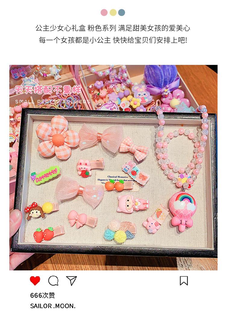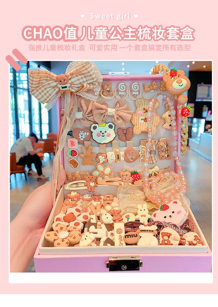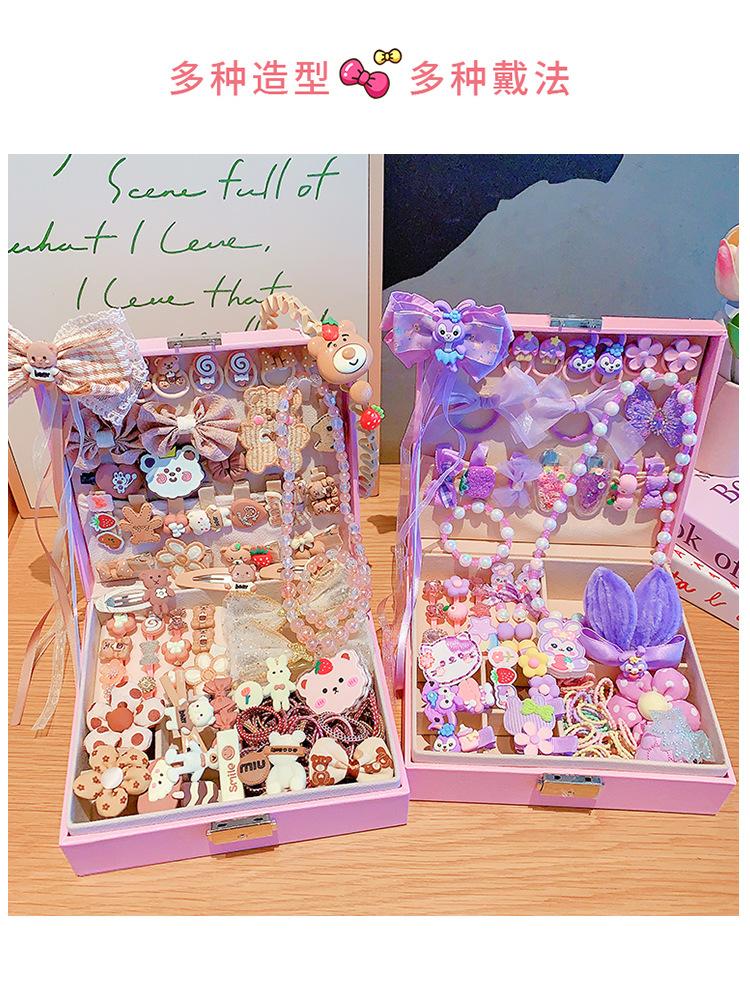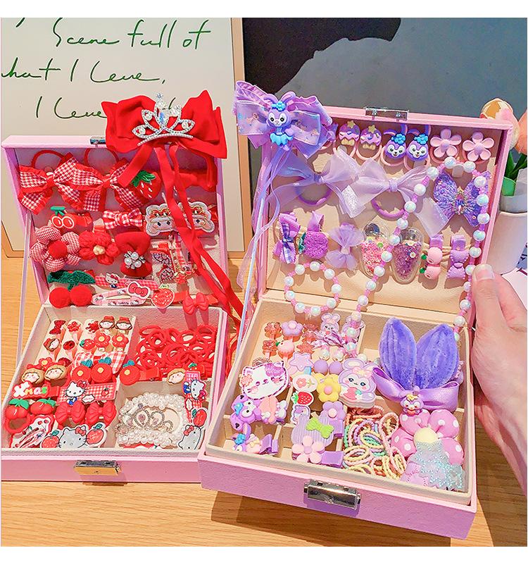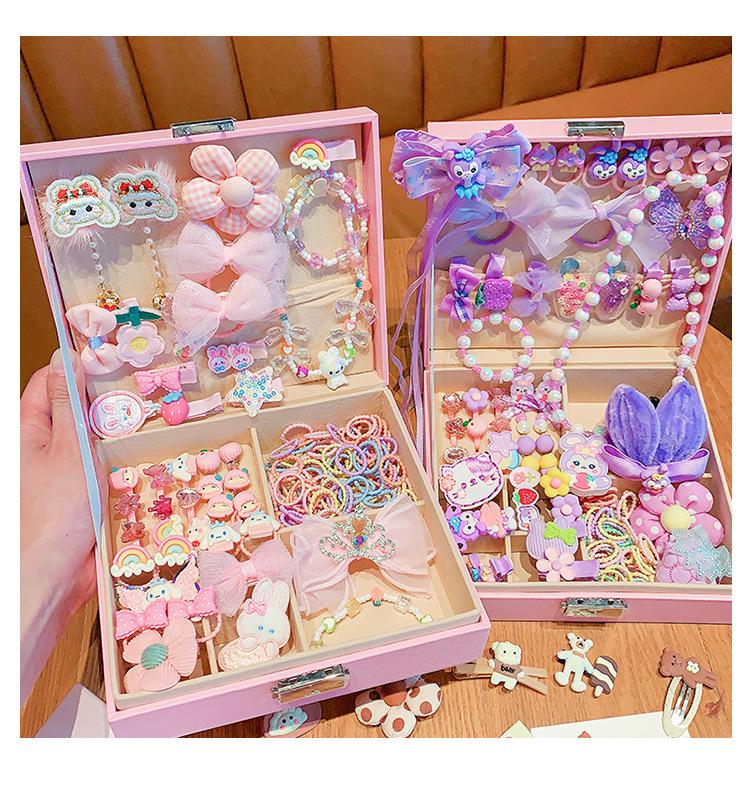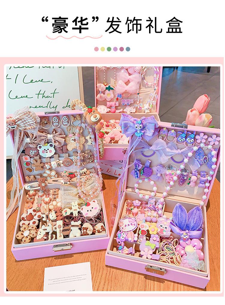 Acessórios para o cabelo das crianças conjunto caixa de presente meninas presente de aniversário hairpin elástico cocar pequena princesa caixa de jóias bonito atacado