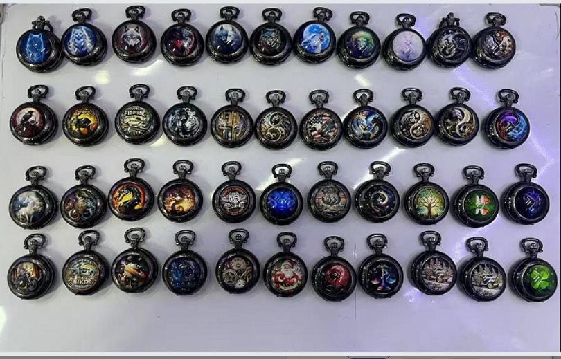 Compre Relógio de bolso médio com padrão de cor, vintage, capa flip, decorativo, colar, relógio personalizado, moderno, relógio de quartzo, internacional, para homens e mulheres, estudantes no atacado no Joom.pro