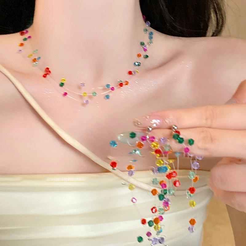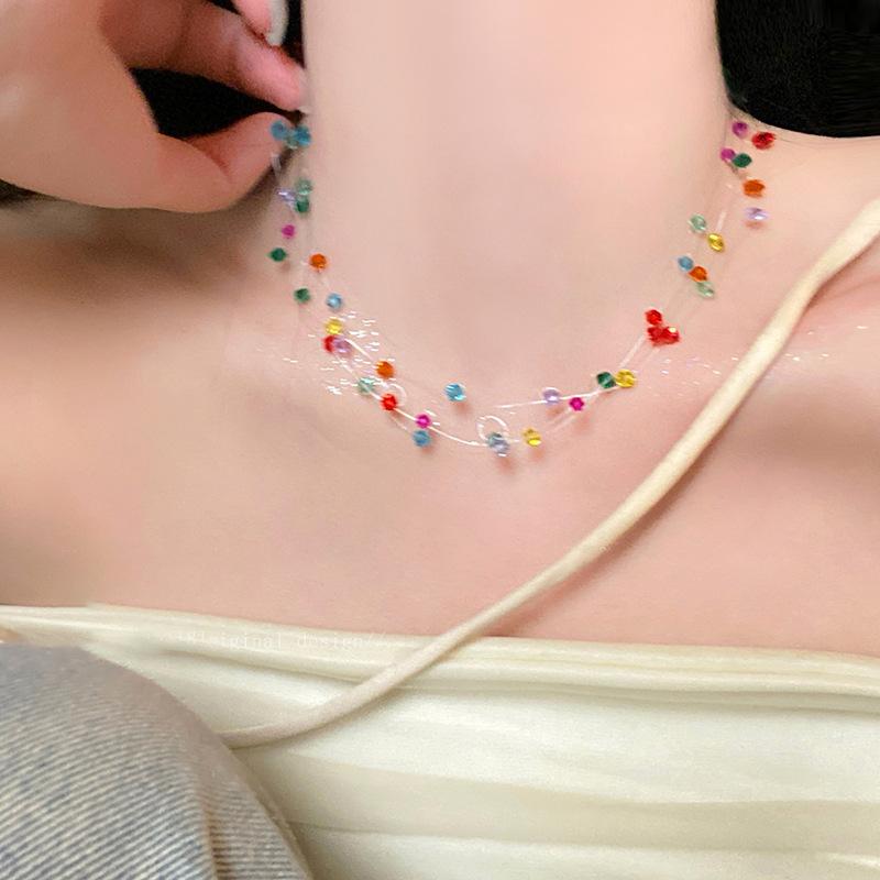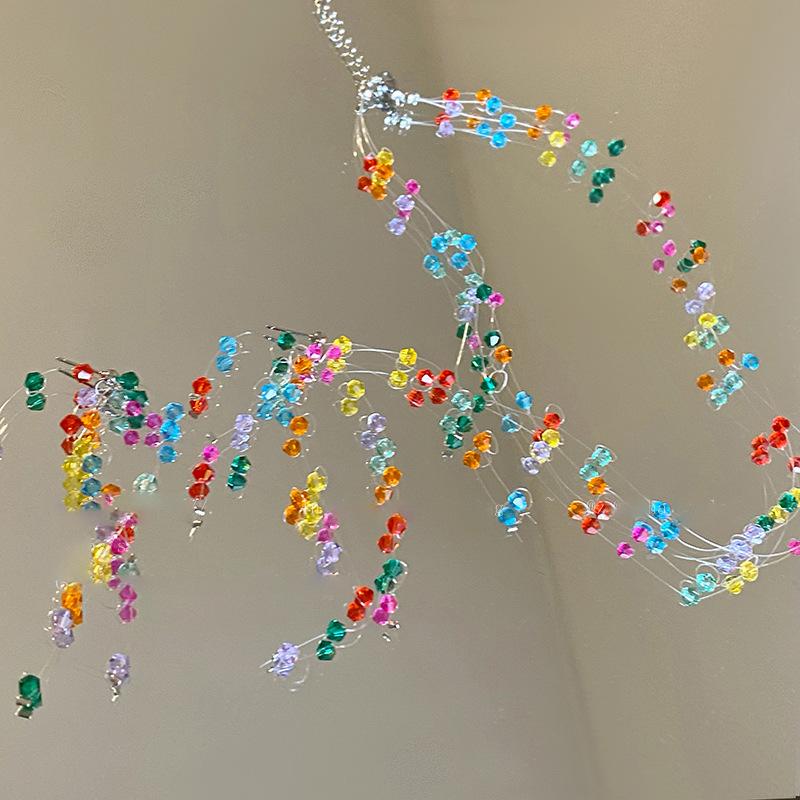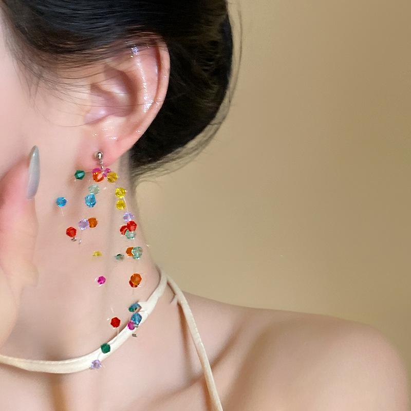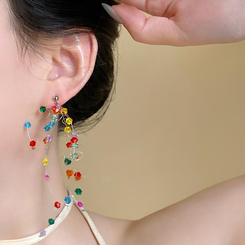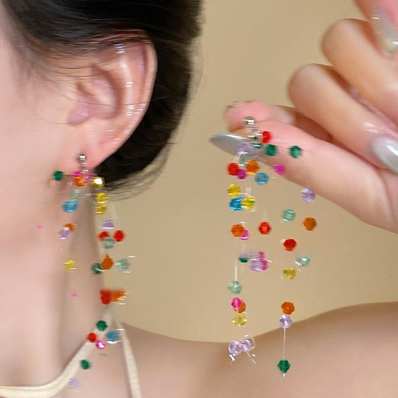 Brincos de Borla de Miçangas de Vidro Coloridas Agulha de Prata Verão Coloridos Dopamina Brincos de Pino Temperamento Doce Fresco Brincos da Moda