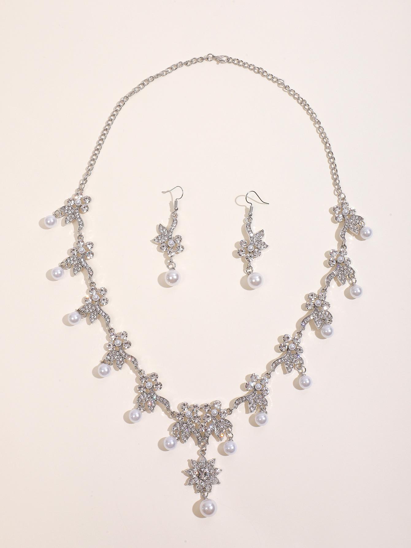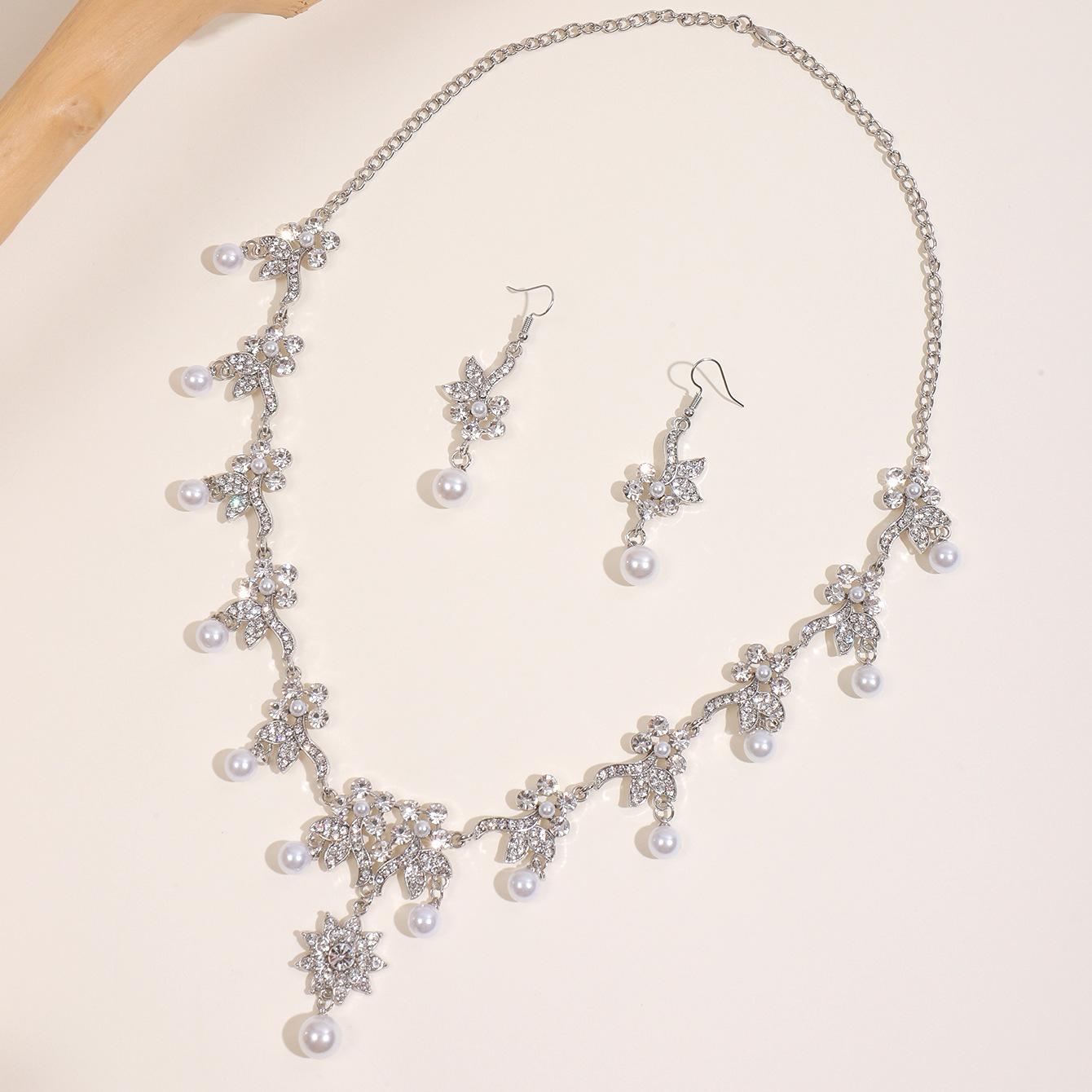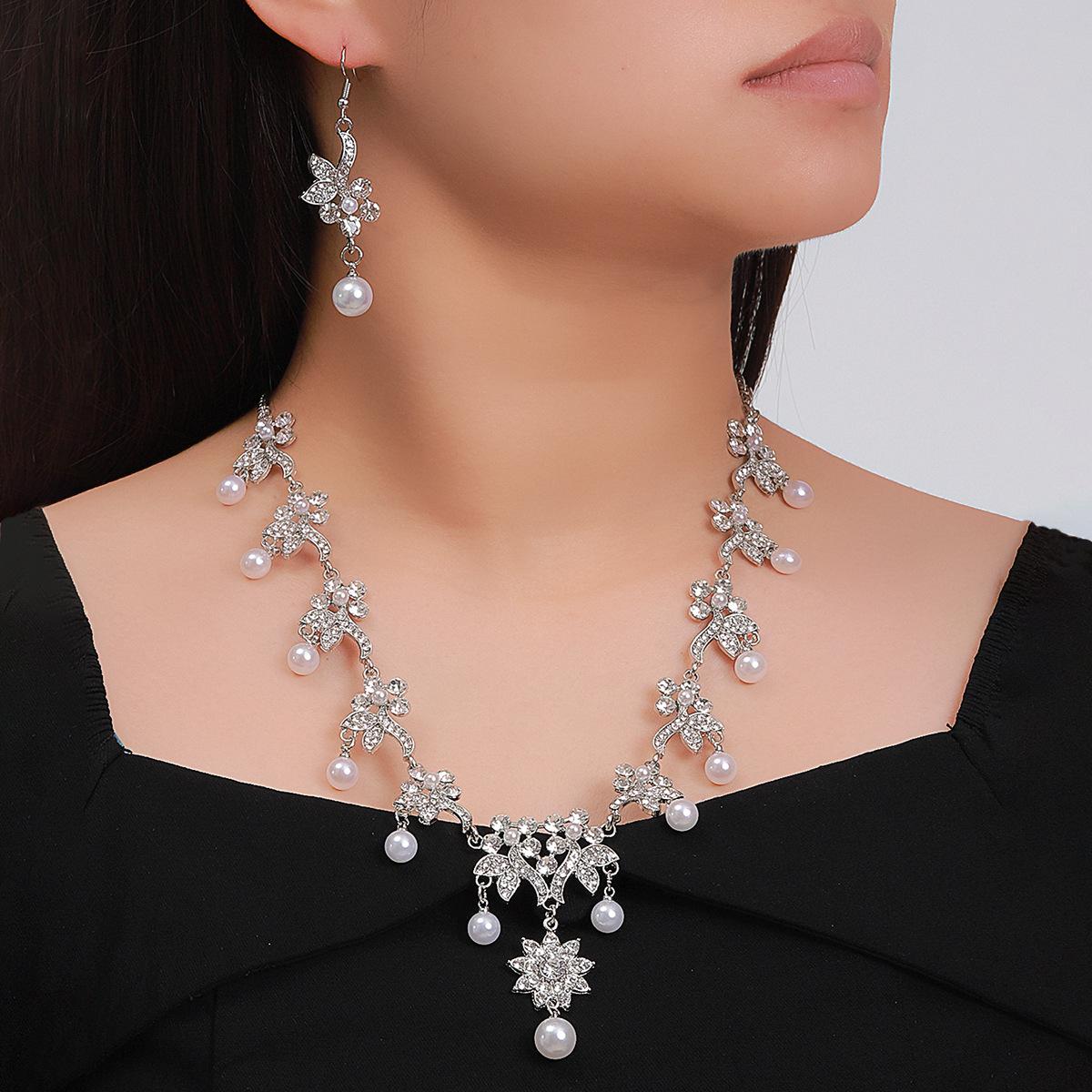 Moda simples europeia e americana exagerada colar de pérolas de grande nome brincos conjunto strass acessórios para vestido de noiva feminino