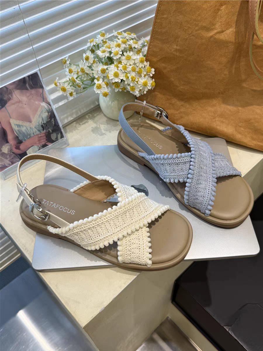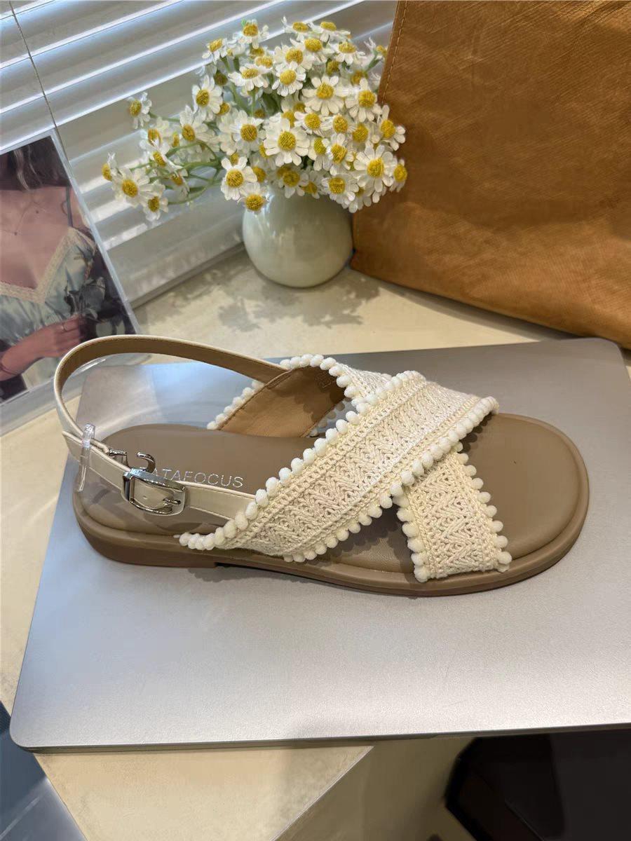 Sandálias de Fivela Fada Praia Verão Bico Aberto Cruz Cinto Feminino 2025 Sandálias Rasteiras Casuais Femininas Novas