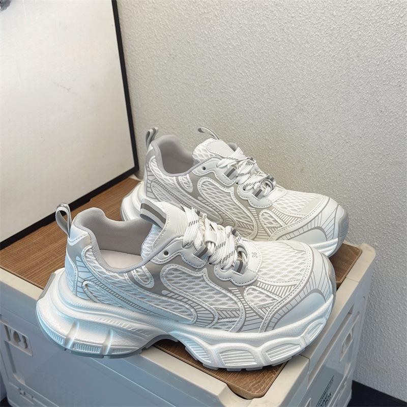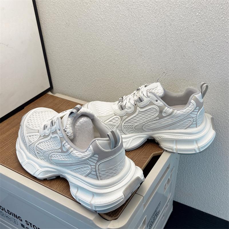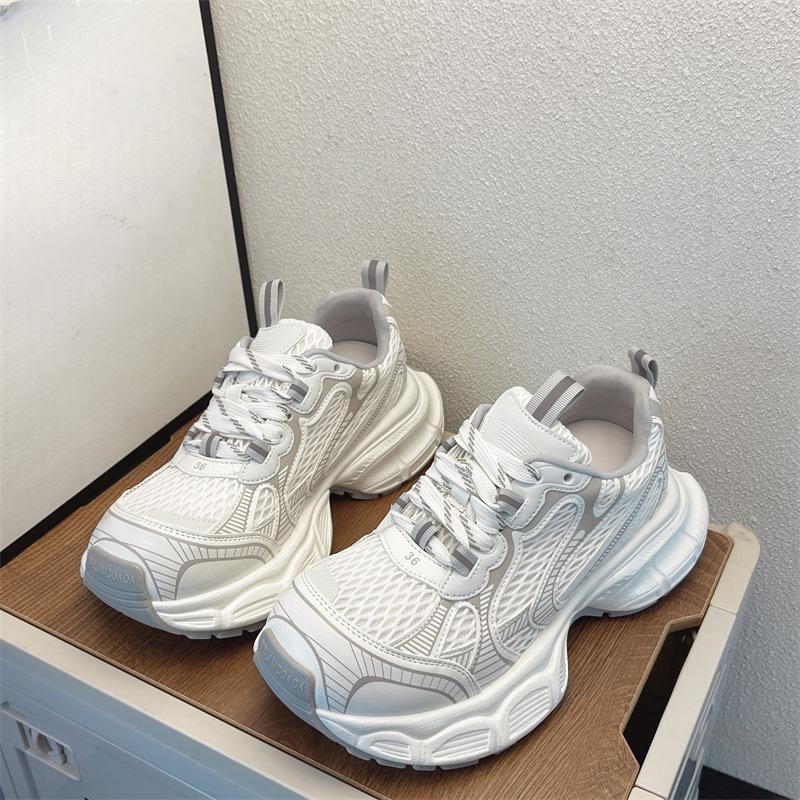 Compre Tênis Torre de Solado Grosso Feminino 2025 Primavera e Verão Novo Versátil Malha Respirável Tênis Leve Casual Sapatos Brancos no atacado no Joom.pro