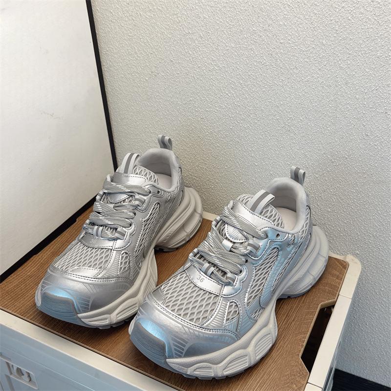 Tênis Torre de Solado Grosso Feminino 2025 Primavera e Verão Novo Versátil Malha Respirável Tênis Leve Casual Sapatos Brancos