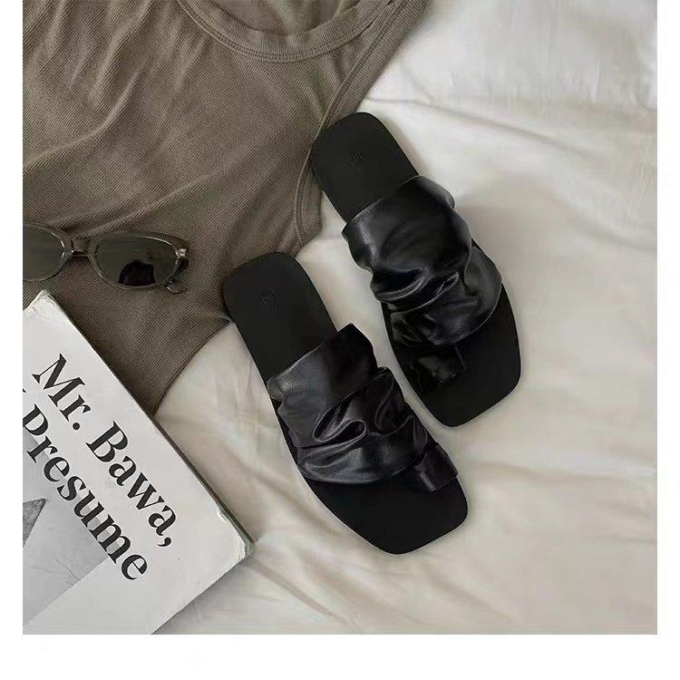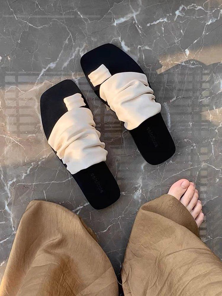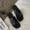 Novas Sapatilhas Rasteirinhas de Bico Quadrado Verão 2024 Sandálias Femininas da Moda para Uso Externo