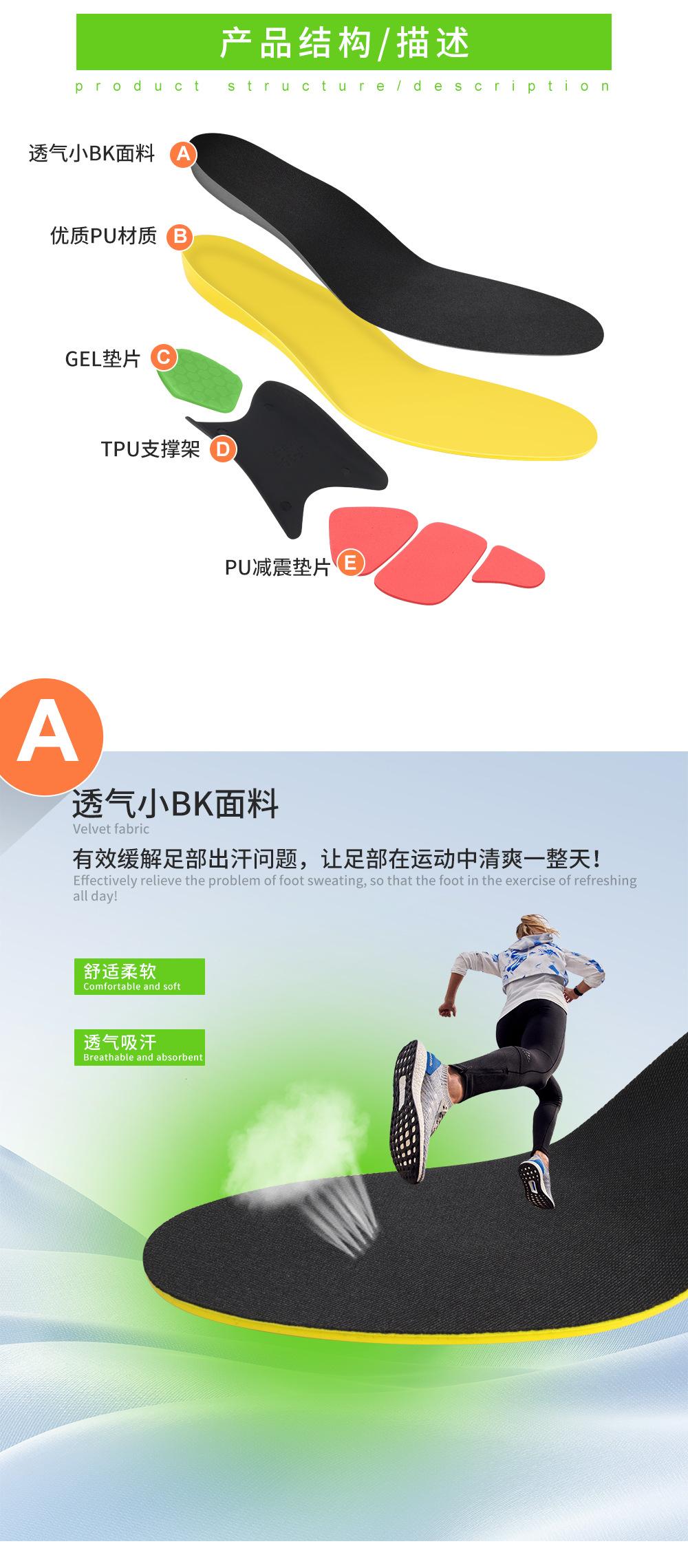 Palmilhas Esportivas de Alta Elasticidade e Absorção de Choque, Absorventes de Suor, Desodorantes, Respiráveis, Longa Duração, Não Cansativas, Absorventes de Choque, Espessadas, Antiderrapantes, Palmilhas Esportivas de PU