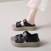 Sandálias Rasteirinhas Retrô Estilo Férias Sapatos de Fada 2024 Novo Verão Preto Combina com Tudo Praia Romanas