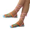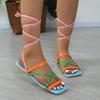 Comércio Exterior Tamanho Grande Sandálias de Tira no Tornozelo Bico Quadrado Bico Aberto 2024 Verão Novo Europeu e Americano Tira Fina Combinação de Cores Sandálias Rasteirinhas