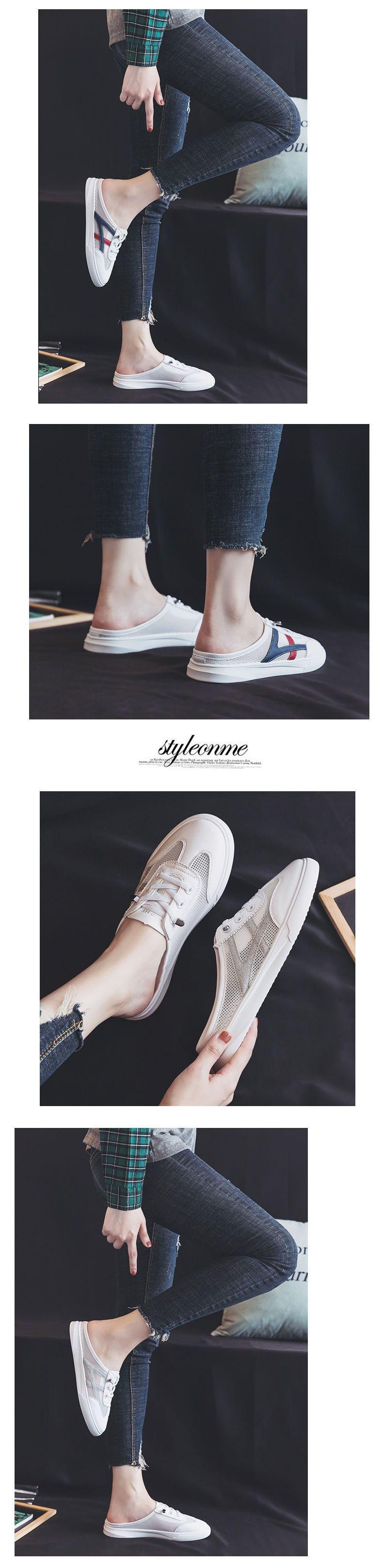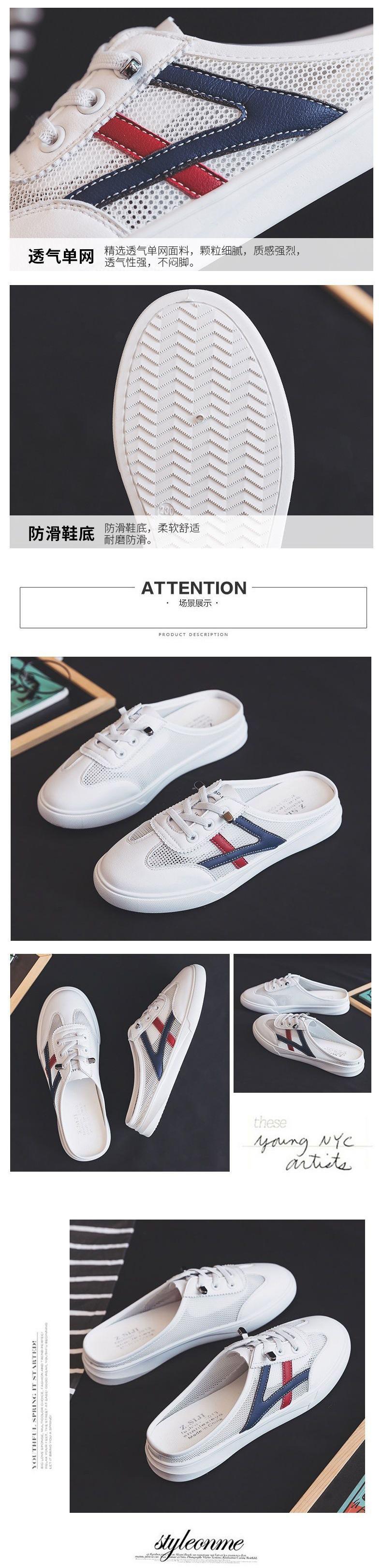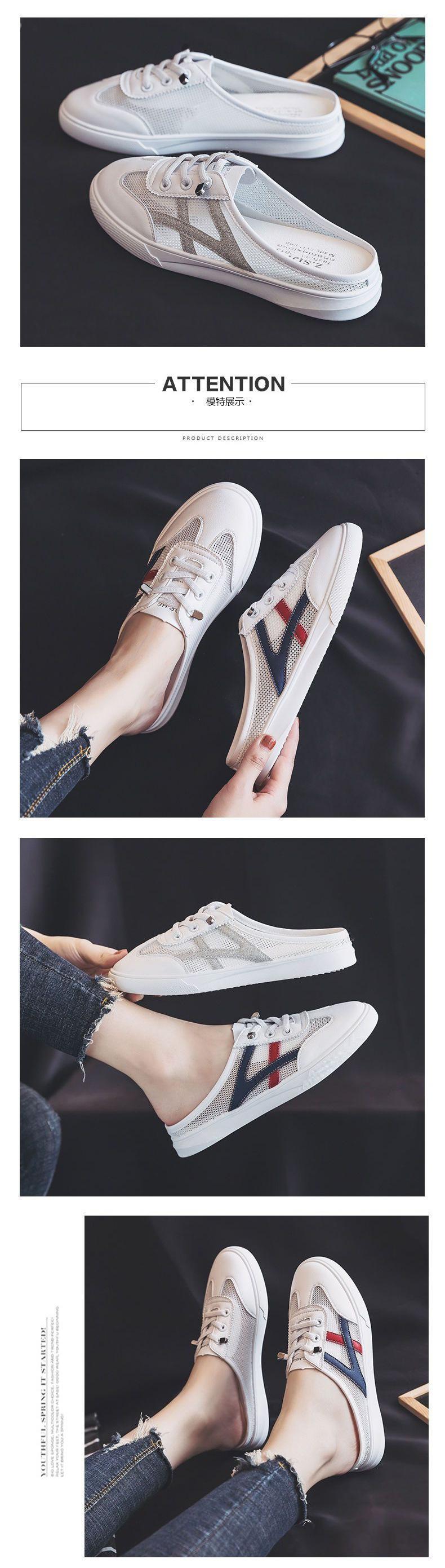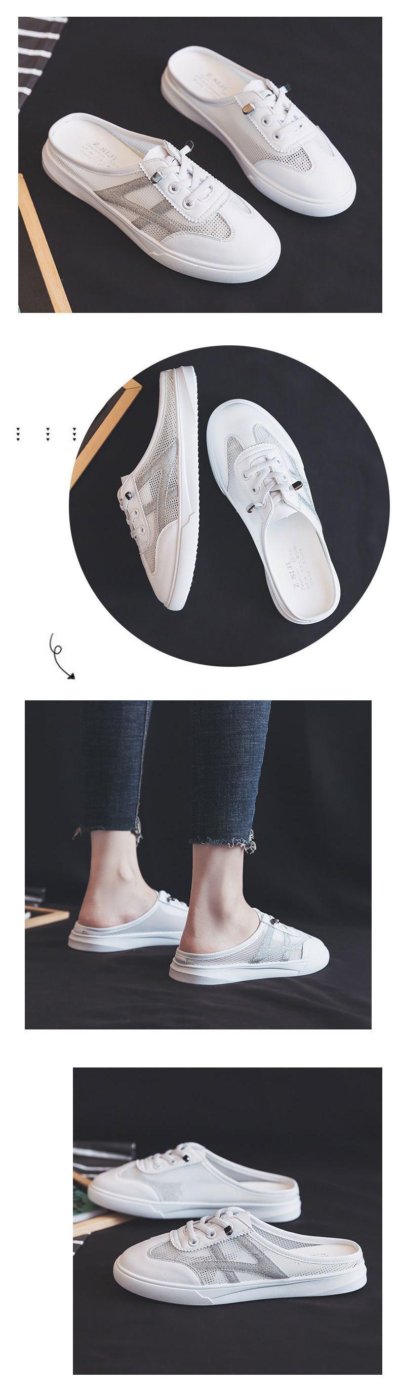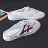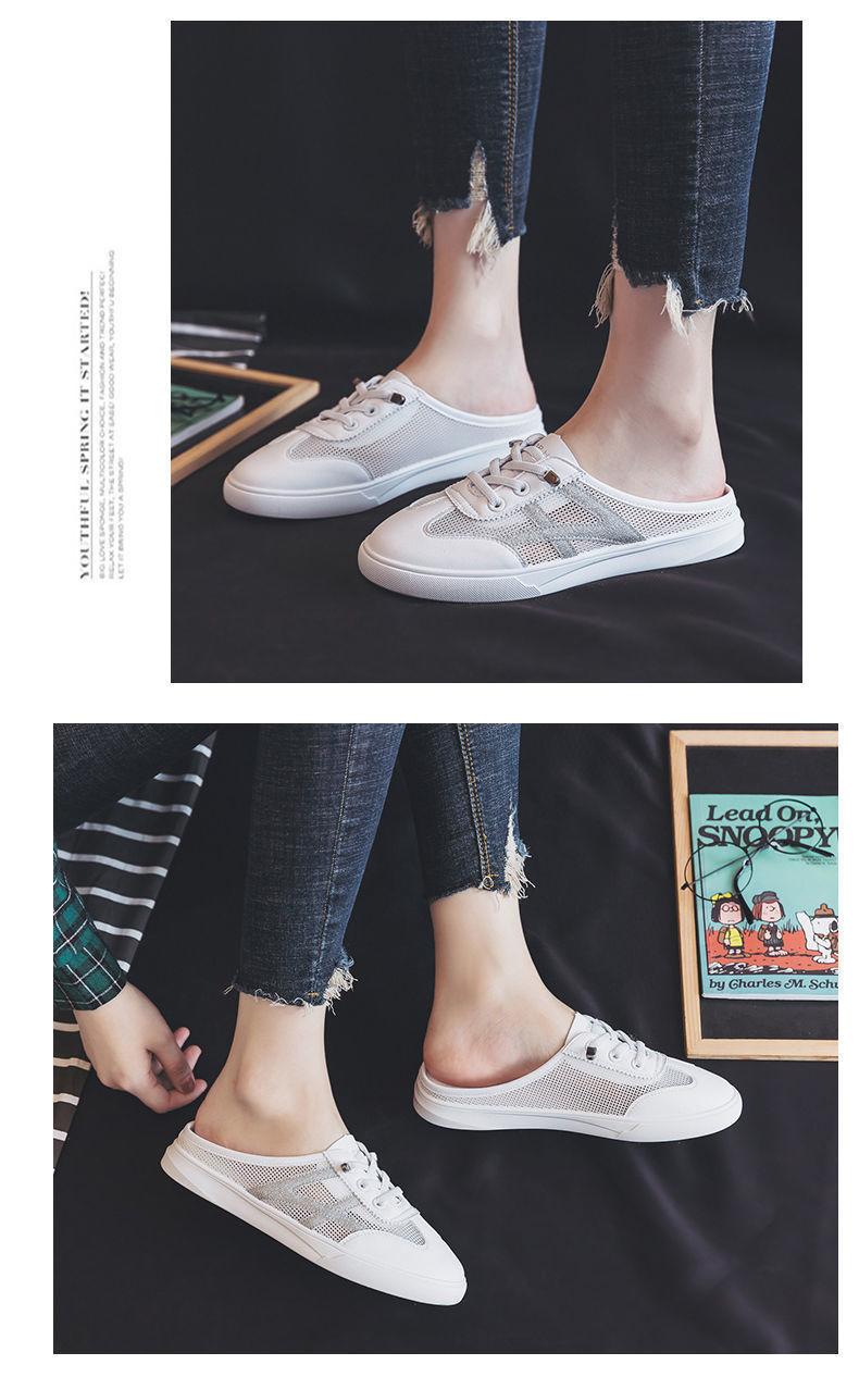 Verão 2024 Novo Versátil Bico Fechado Sem Encosto Branco Mules Rasteiras Femininas Sandálias da Moda para Uso ao Ar Livre
