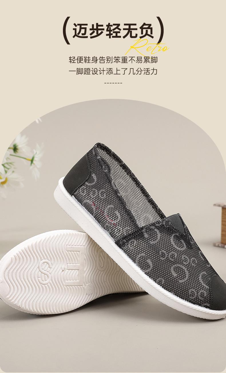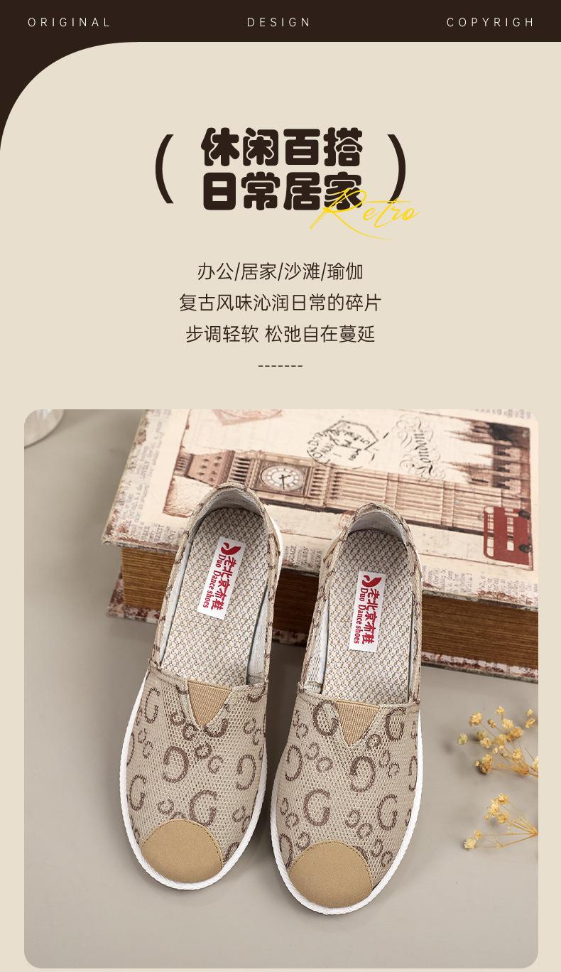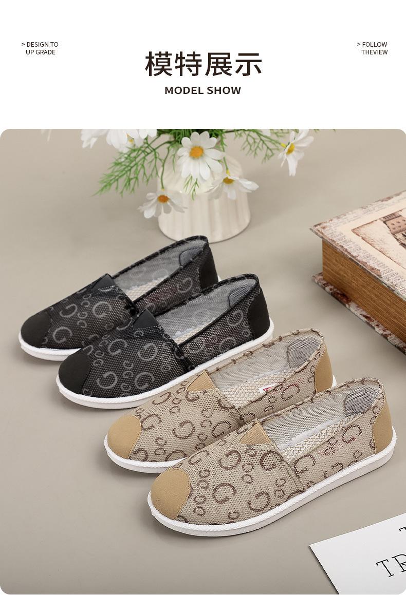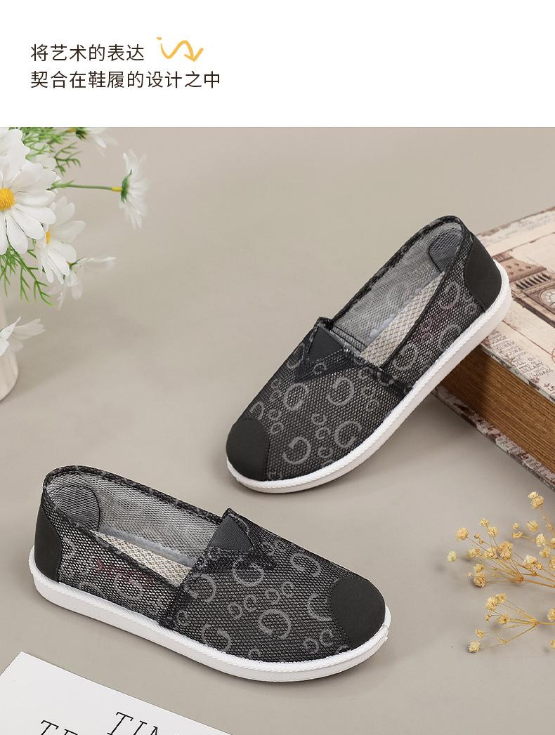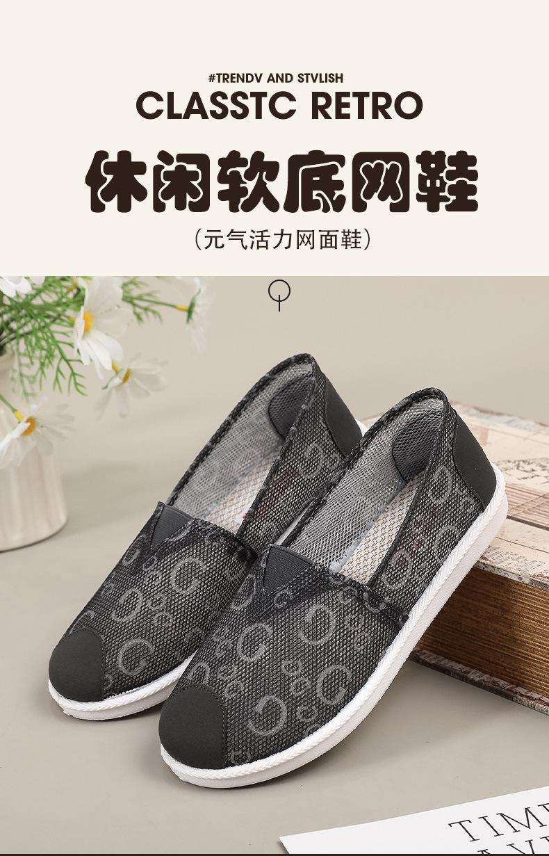 Novos Sapatos de Pano de Pequim Antigos de Primavera e Verão Sapatos de Pescador Antiderrapantes Femininos Sapatos Baixos de Sola Macia Sapatos de Mãe de Meia-Idade e Idosa Sapatos de Malha Casuais