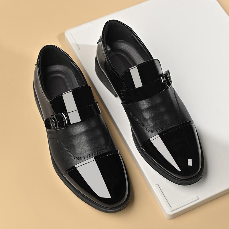 Novos Sapatos Sociais Formais de Couro de Bico Fino Masculinos Estilo Britânico Respiráveis e Resistentes ao Desgaste Sapatos Masculinos Moda Casual Versátil Sapatos de Couro
