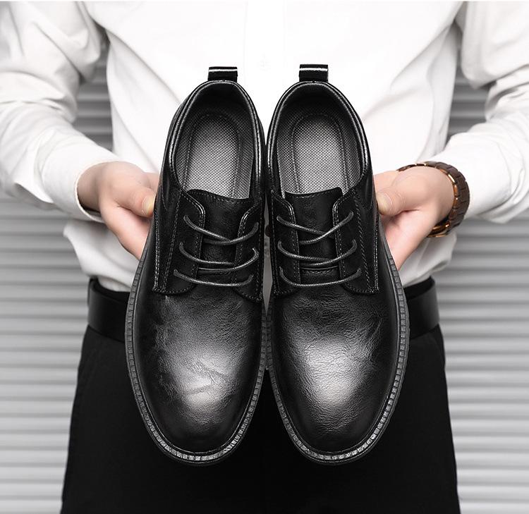 Sapatos Masculinos de Primavera Novos Sapatos de Couro Formais para Negócios Sapatos Casuais Britânicos Masculinos para Casamento Antiderrapantes Versáteis