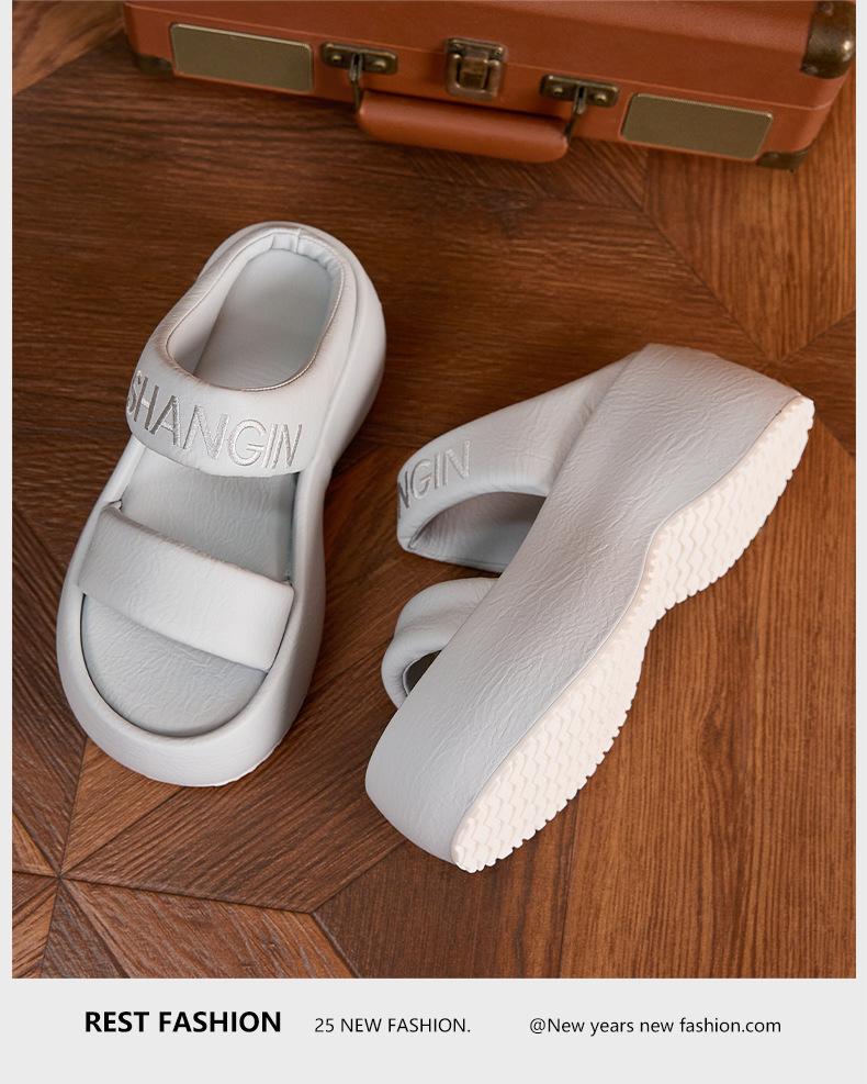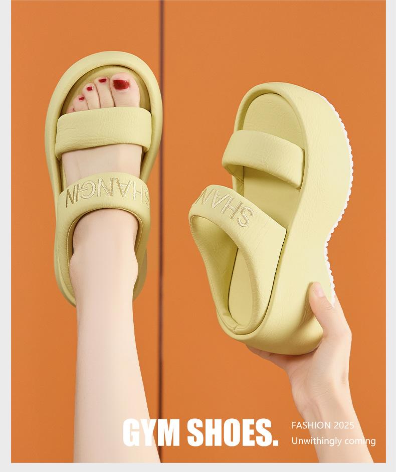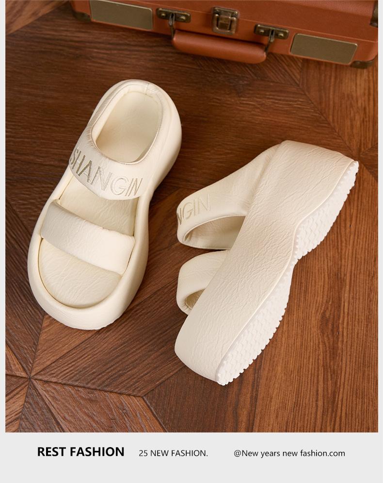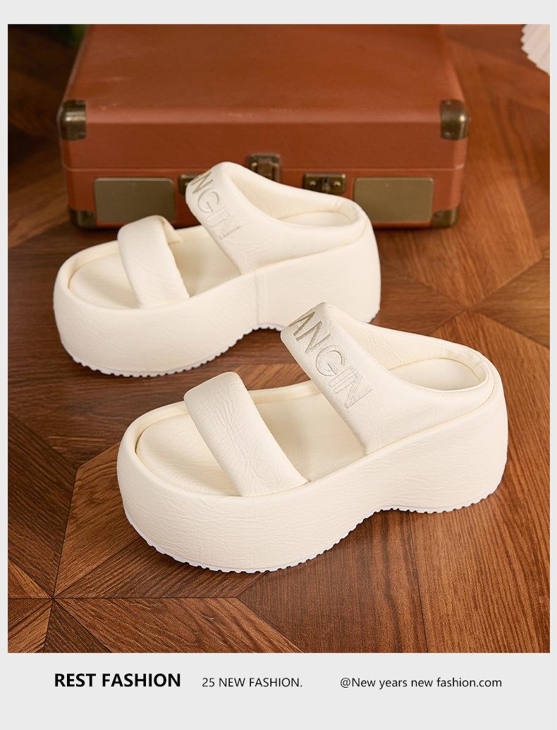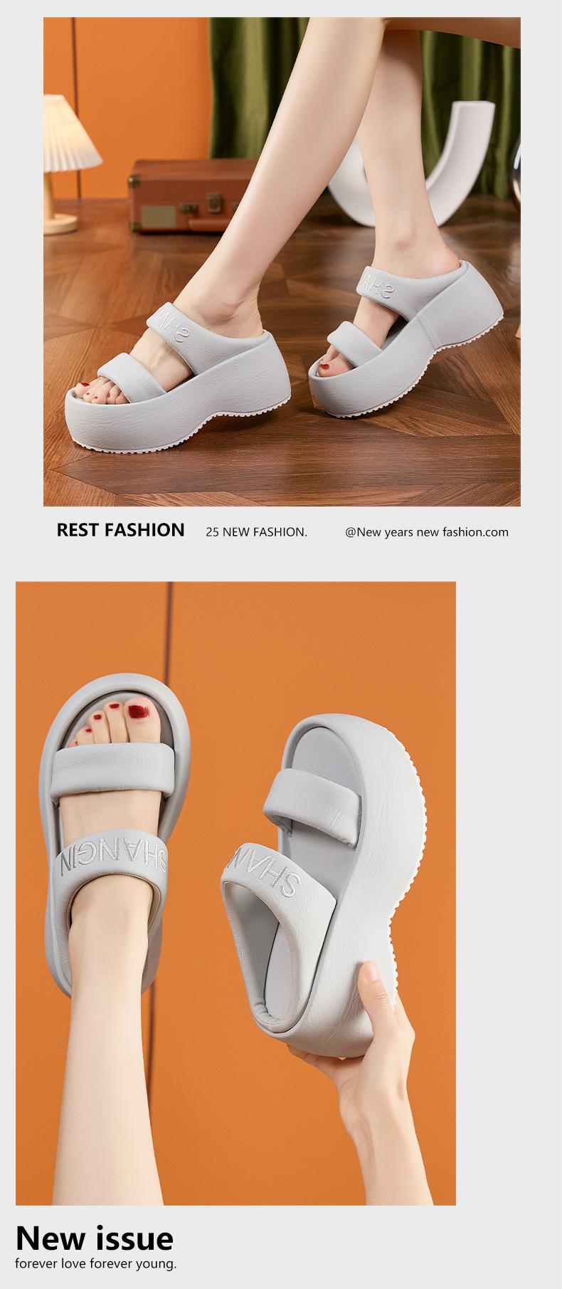 Chinelo de sola grossa feminino 2025 verão para uso externo novo casual que combina com tudo meio chinelo aumentado antiderrapante não causa chulé sandálias
