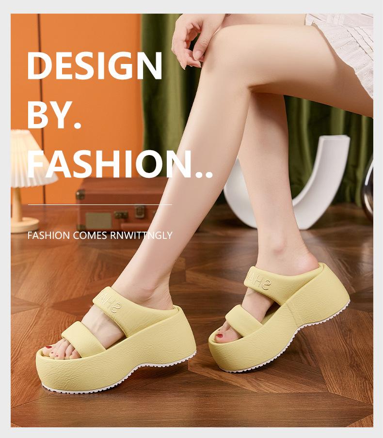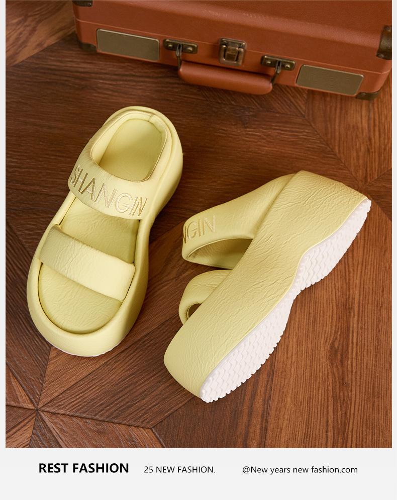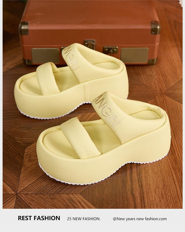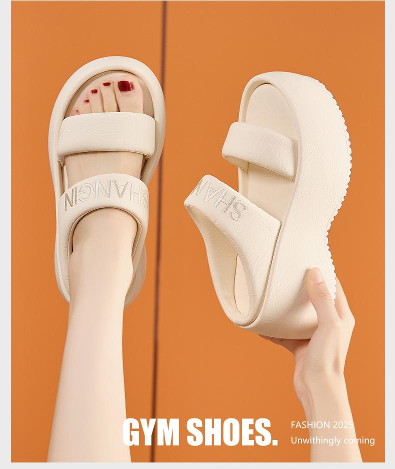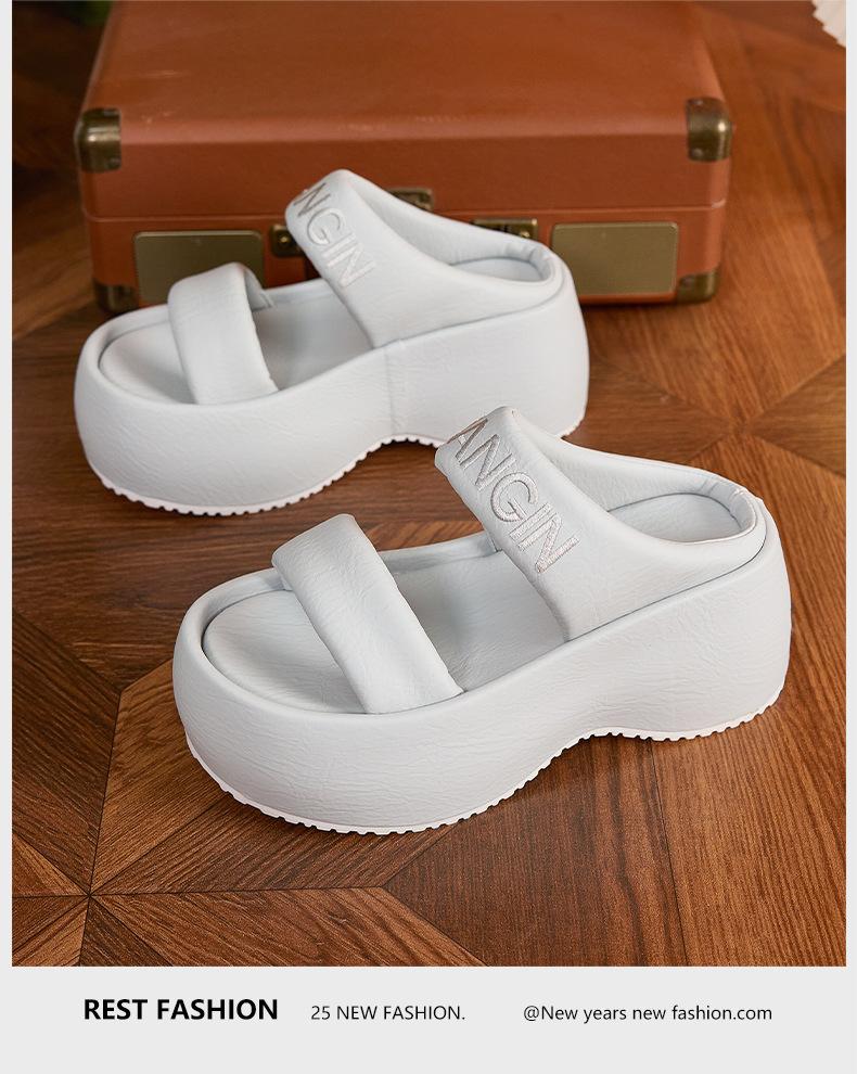 Chinelo de sola grossa feminino 2025 verão para uso externo novo casual que combina com tudo meio chinelo aumentado antiderrapante não causa chulé sandálias