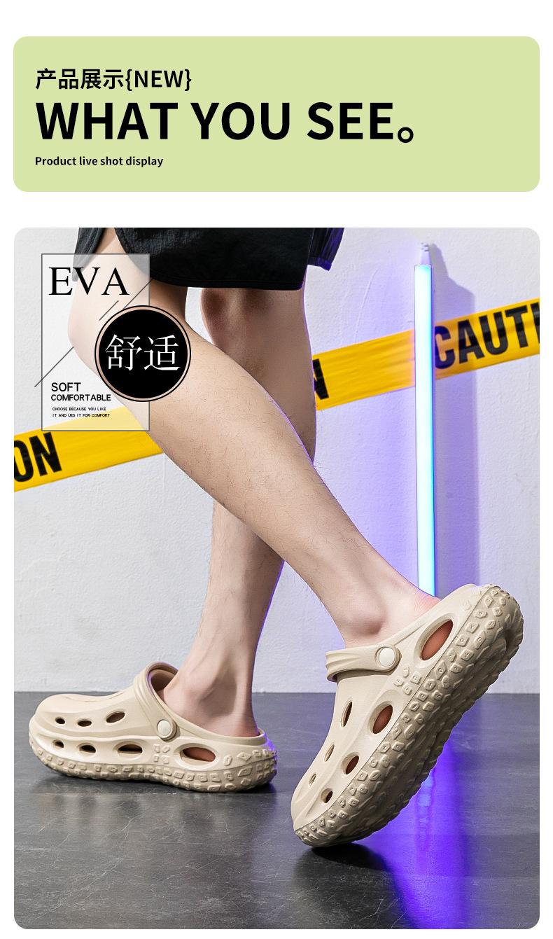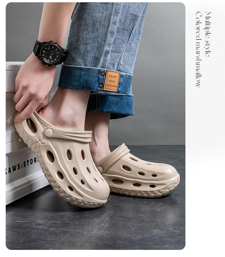 Sapatos Vazados Masculinos 2025 Verão Novo Sandálias Esportivas Masculinas Praia Uso Externo Antiderrapante Desodorante Chinelos Baotou Verão
