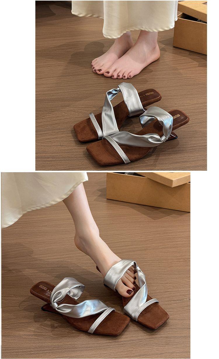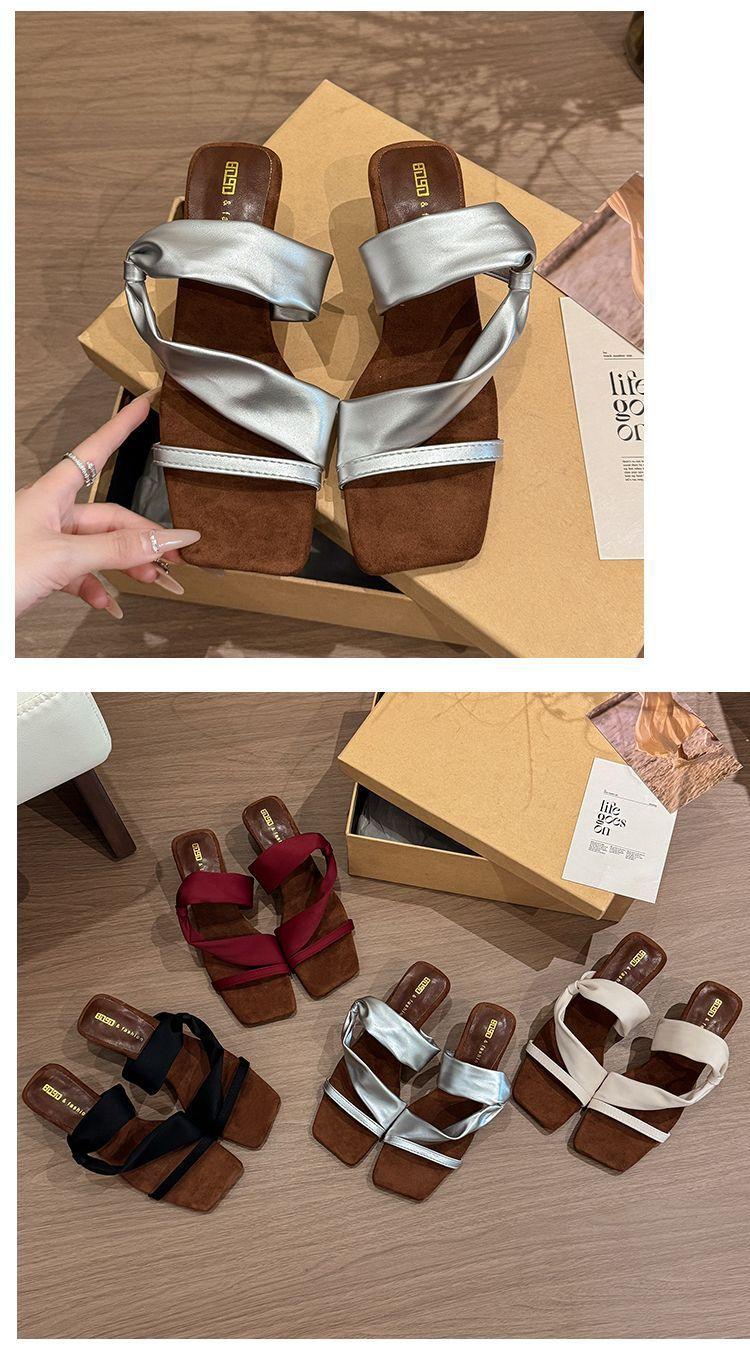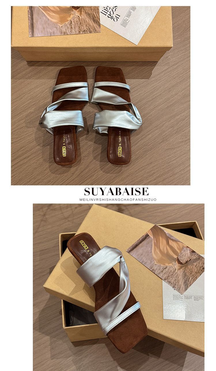 Chinelo Slimming Trendy Design Irregular Retrô Elegante Bico Quadrado Verão Novo Versátil Sandália Slide