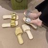 Sapatos de Praia Slip-on Super Populares para Roupa Exterior Feminina 2024 Novo Verão Estilo Coreano Versátil Solado Rasteiro Férias Casual Chinelos