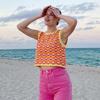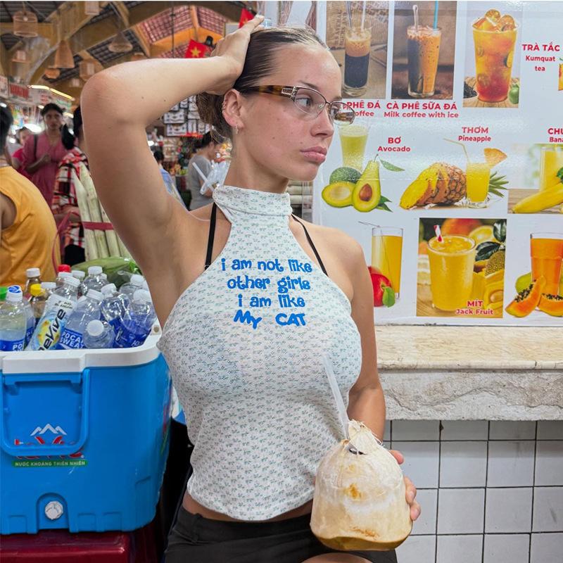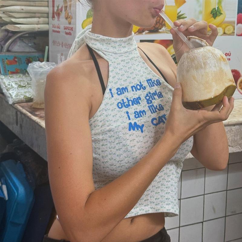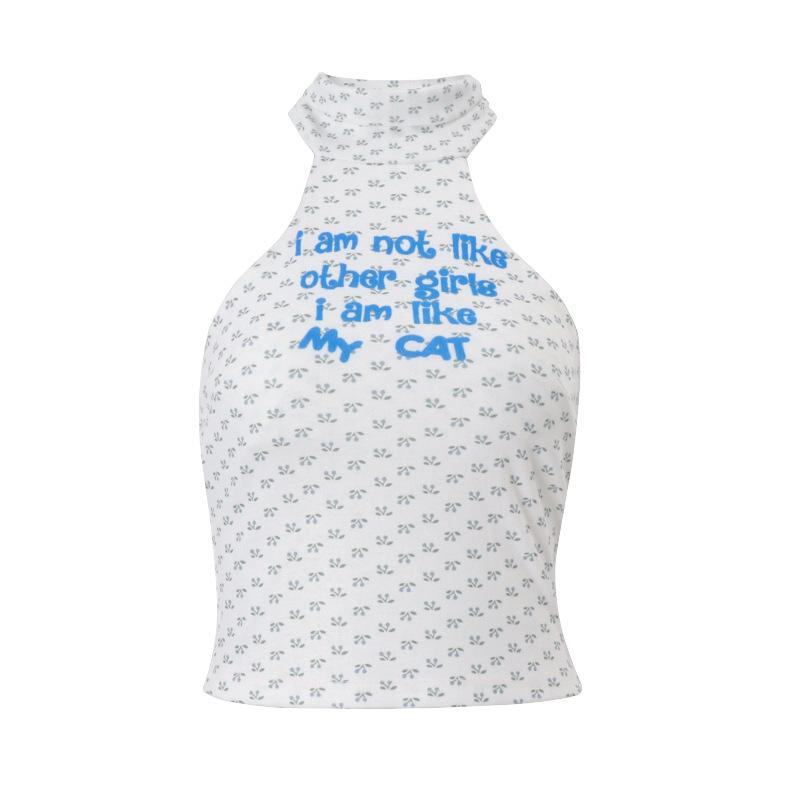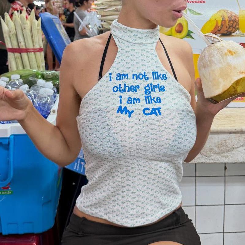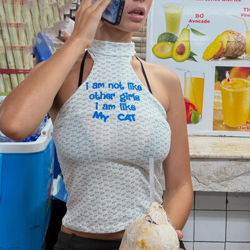Amazon Roupas Europeias e Americanas Verão Nova Moda Personalidade Menina Quente Estampa de Letras Sem Mangas Curto Regata Interna Top