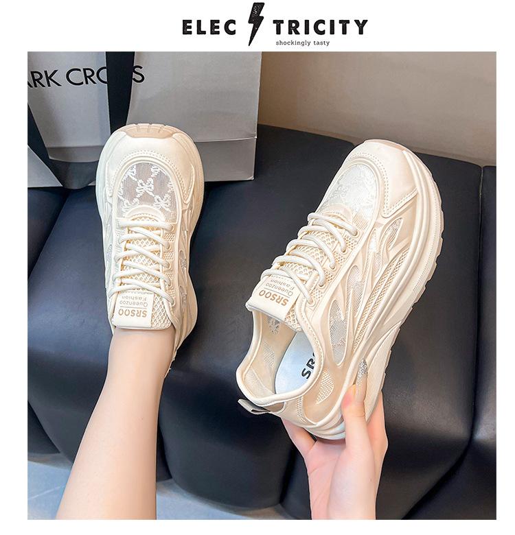 Tênis Esportivo Feminino 2025 Novo Primavera e Verão Tênis de Mesh Solado Macio Mesh Respirável Tênis Feminino Tênis Branco Leve Amortecedor Tênis de Corrida