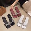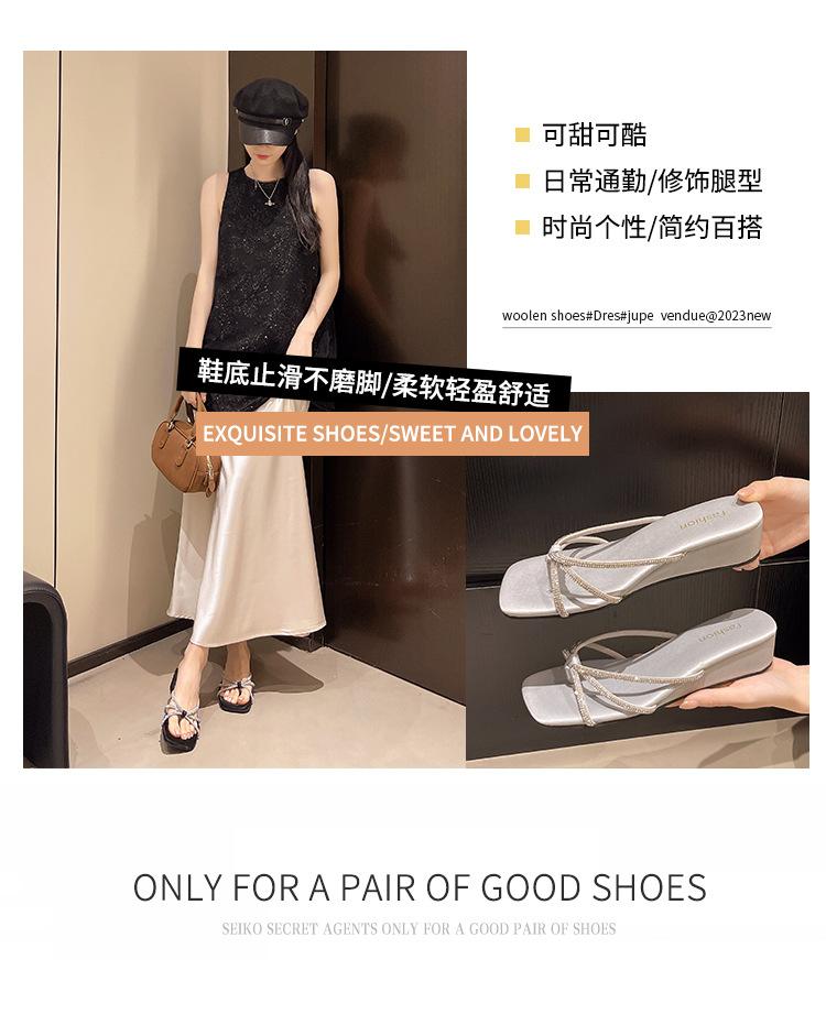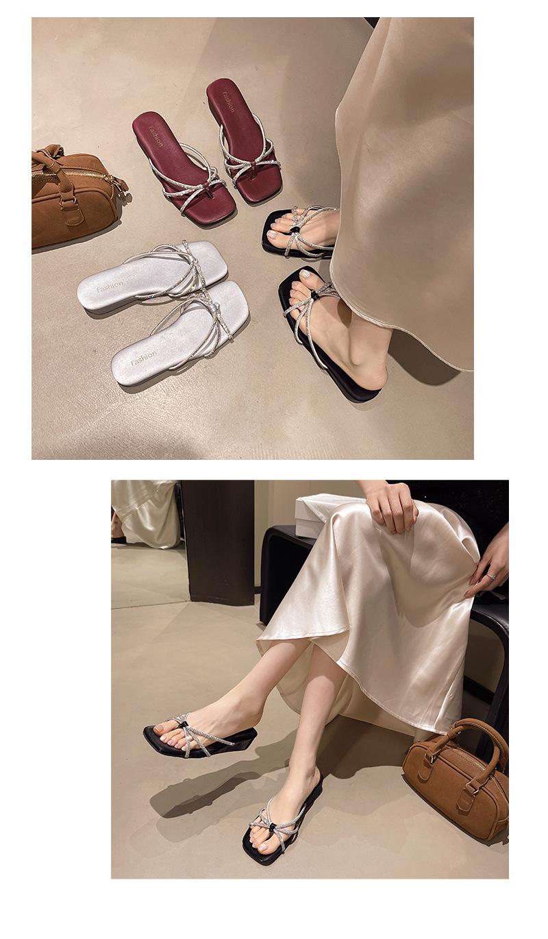 O Mesmo Estilo de Chinelos Rasteirinhas de Tiras Finas com Strass Moonlight Wonderland para Mulheres Usarem ao Ar Livre no Verão, Roupa Exterior Popular de Fada