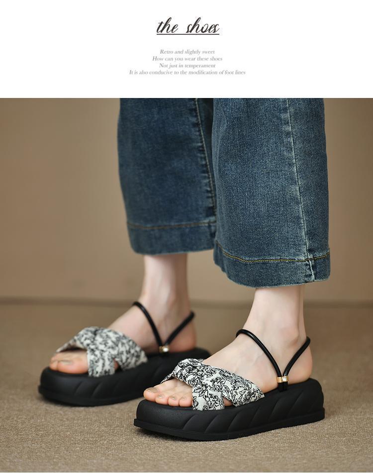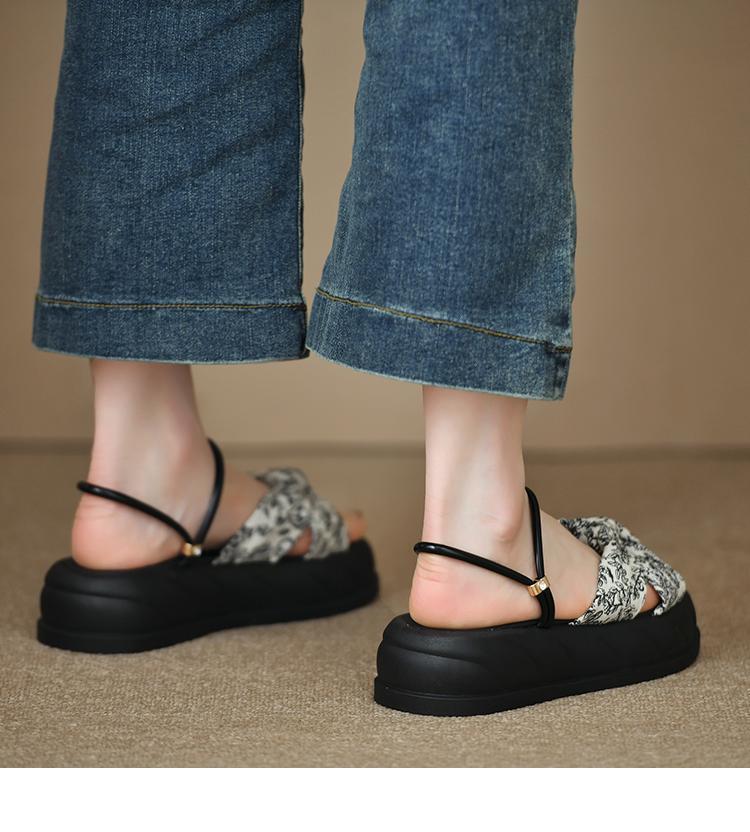 Sandálias Nacionais Explosões da Moda Femininas 2024 Novo Verão Calçado Romanesco de Alto Nível Mocassins de Plataforma Sapatos Casuais de Praia
