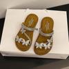 2024 Verão Nova Moda Strass Praia Desgaste Exterior Vestido Estilo Fada Arco Sandálias Planas Chinelos Femininos