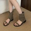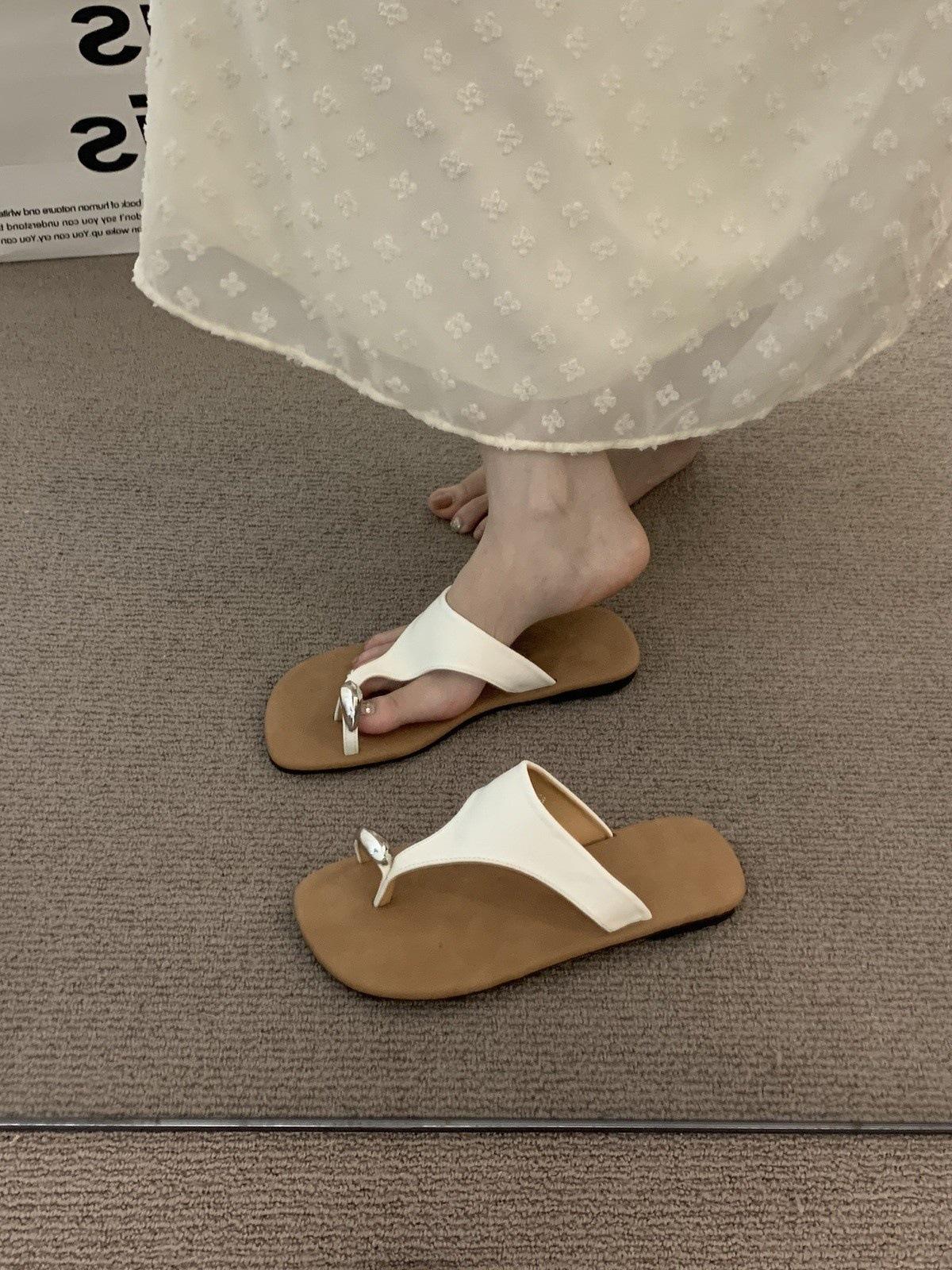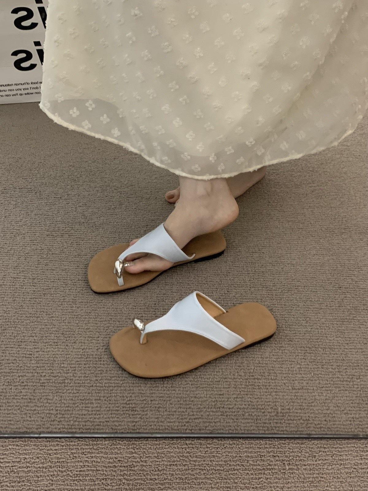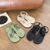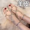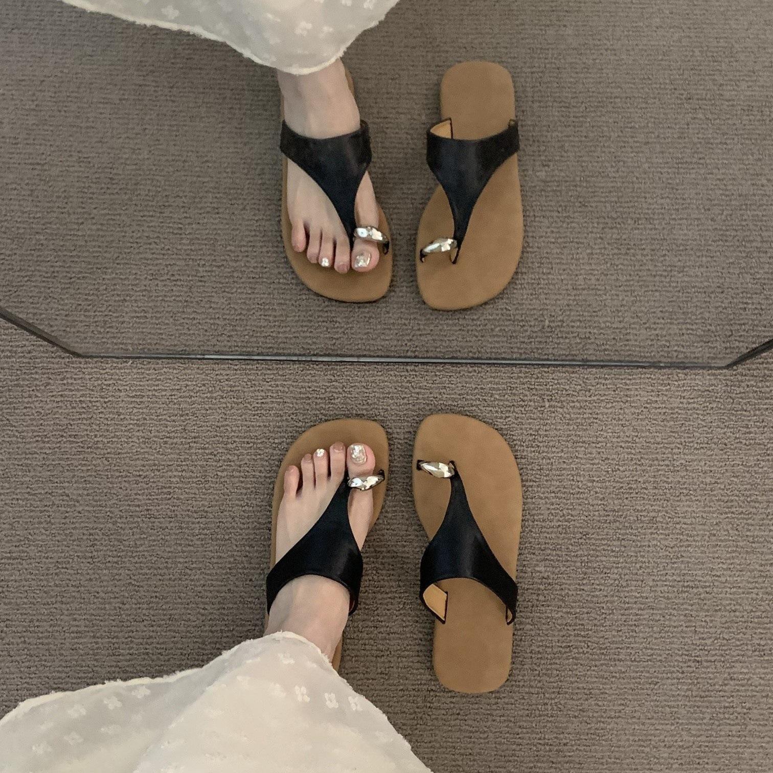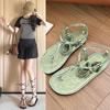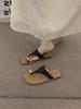 Sandálias Pretas Fio Dental Estilo Resort Retrô Sapatos de Fada 2025 Verão com Saia Estilo Noite Sandálias Romanas