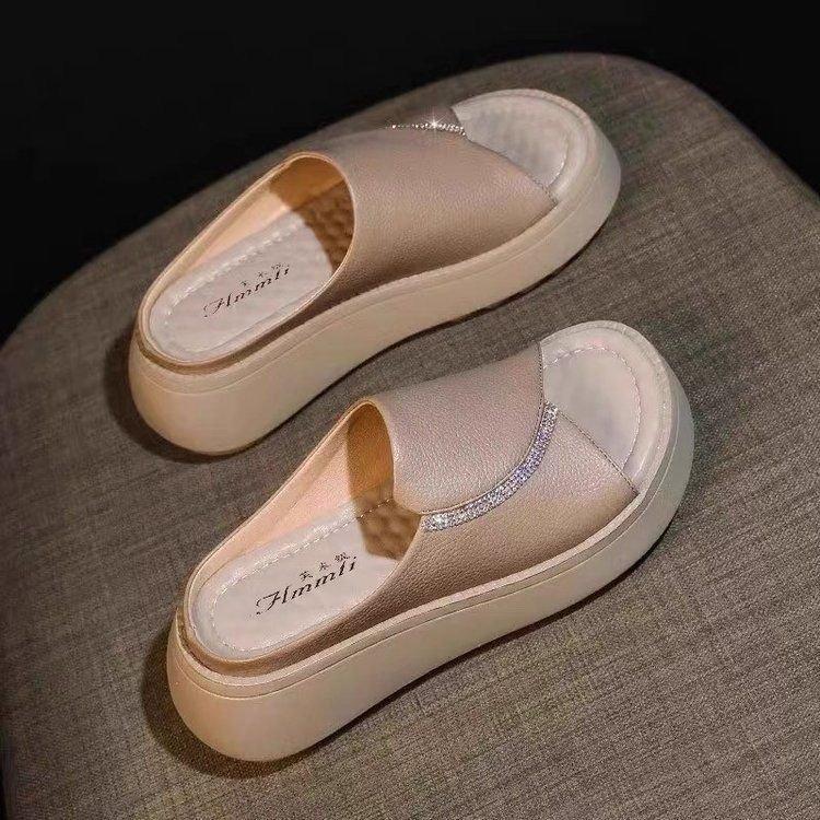 Chinelo de Plataforma Novo Verão 2024, Sandálias Casuais Versáteis Femininas, Chinelos de Sola Grossa com Strass para Mulheres Usarem ao Ar Livre