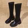 Stretch Skinny 2024 Outono e Inverno Novas Botas Altas Maillard Salto Médio Botas Pequenas Botas Casuais Elevadas