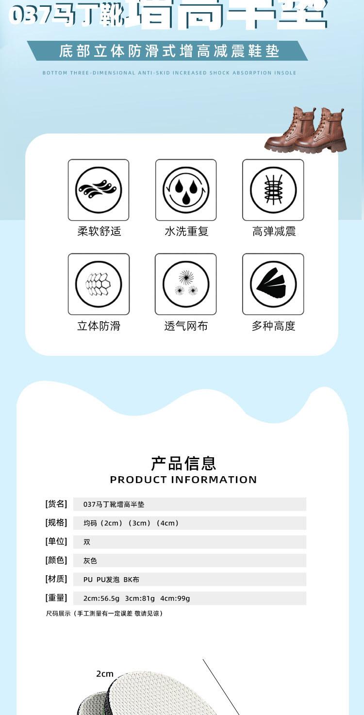 Atacado Pontual Botas Martin Aumentando Meia Palmilha Masculina e Feminina Universal Esportiva Antiderrapante Absorvente de Choque Calcanheira Palmilha Interna Invisível