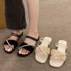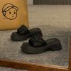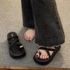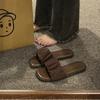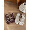 Verão 2024 Novo Estilo Lindo High-end Sandálias de Praia Planas Elegante Roupa Externa Feminina Estilo Francês Chinelos Estilo Chanel