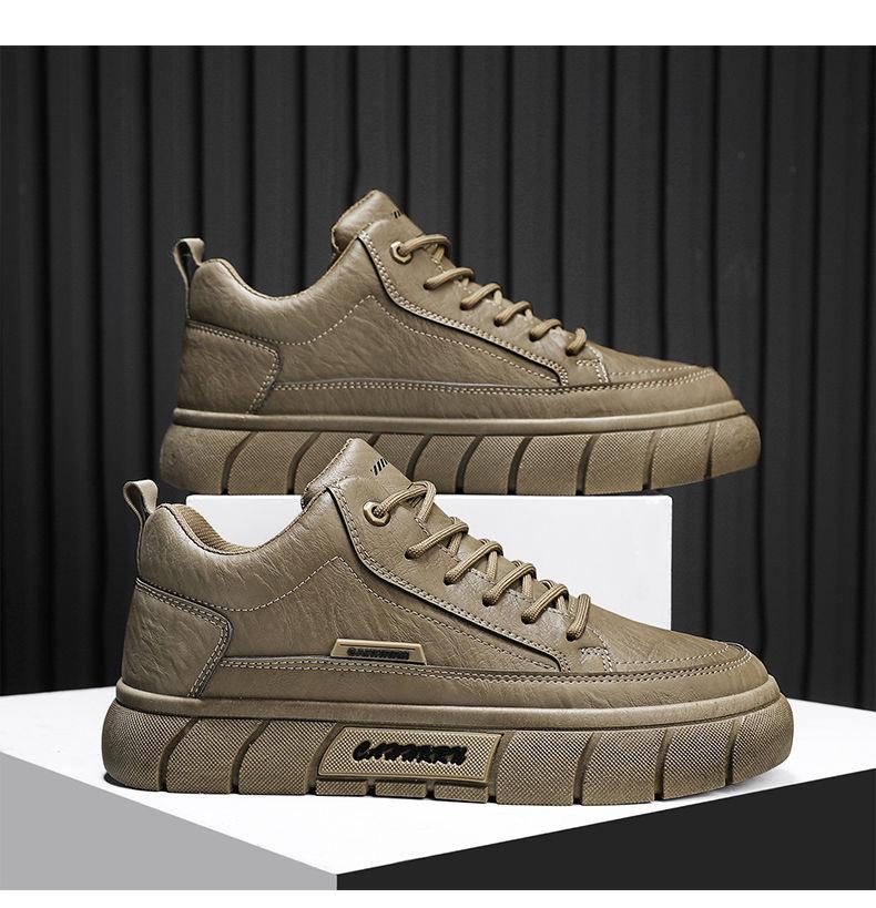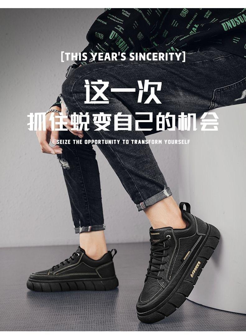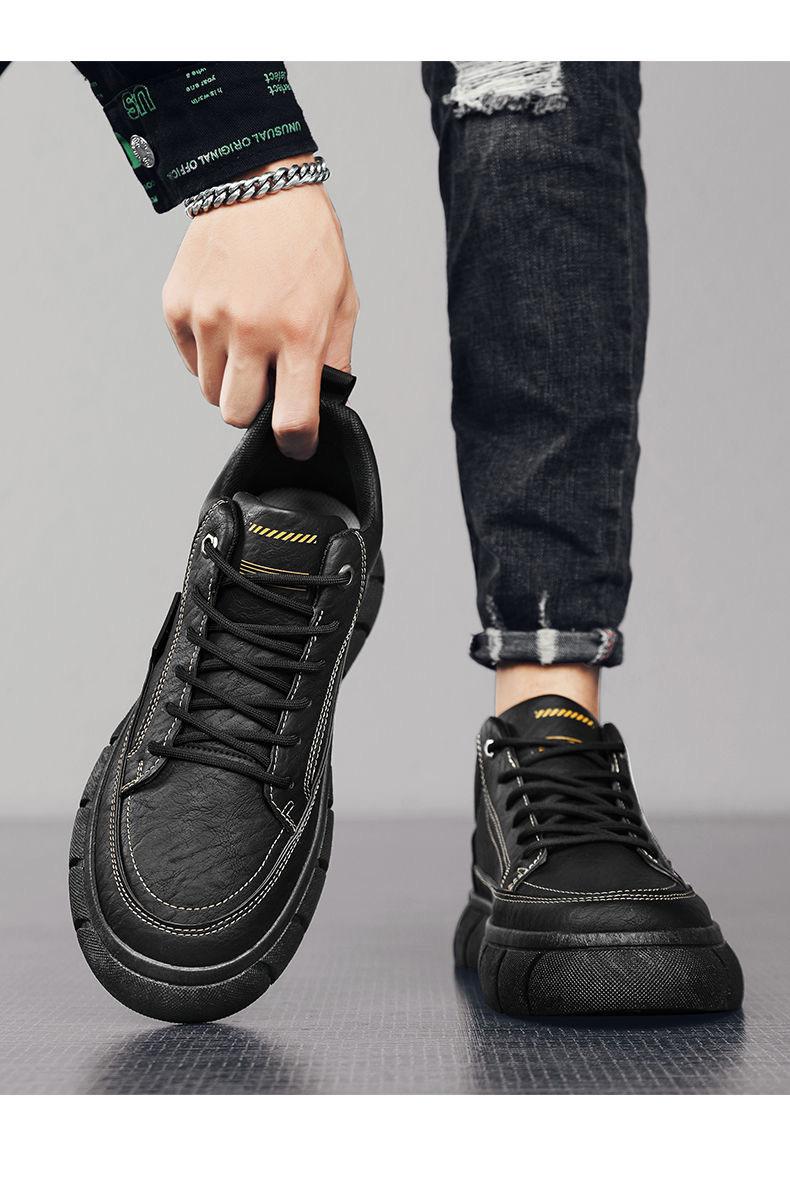 Sapatos Masculinos Primavera Novos Respiráveis Impermeáveis Antiderrapantes Sapatos Masculinos Modernos Versáteis de Couro Preto Tênis Esportivos Casuais para Homens