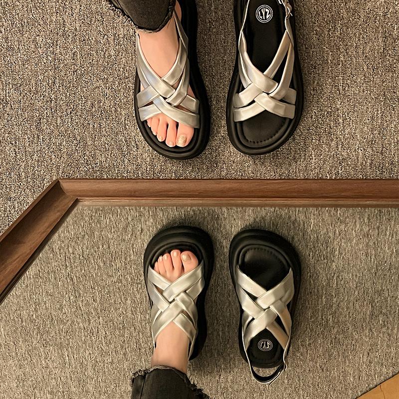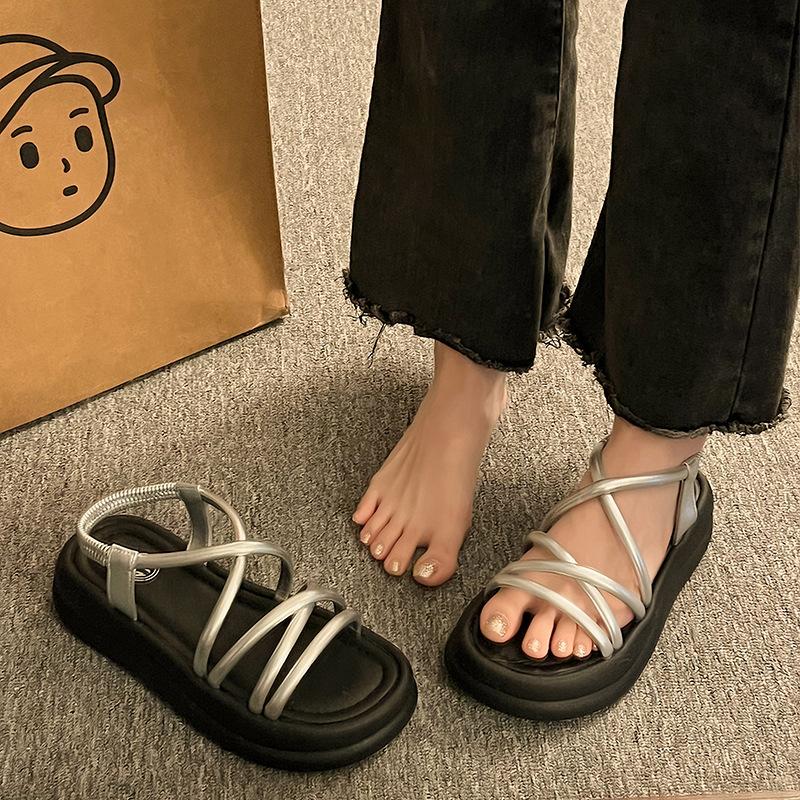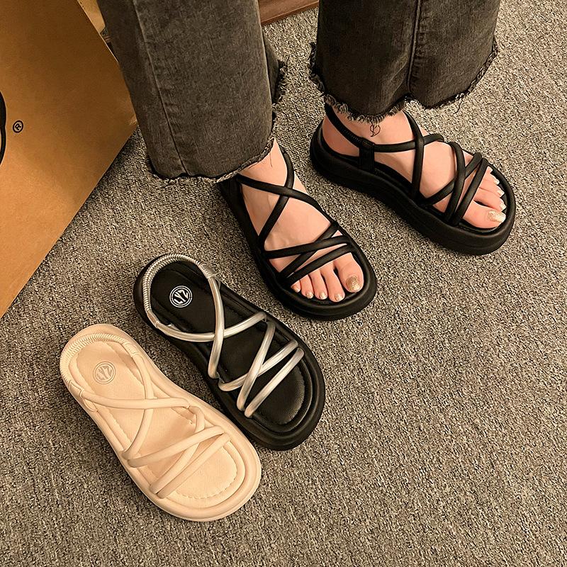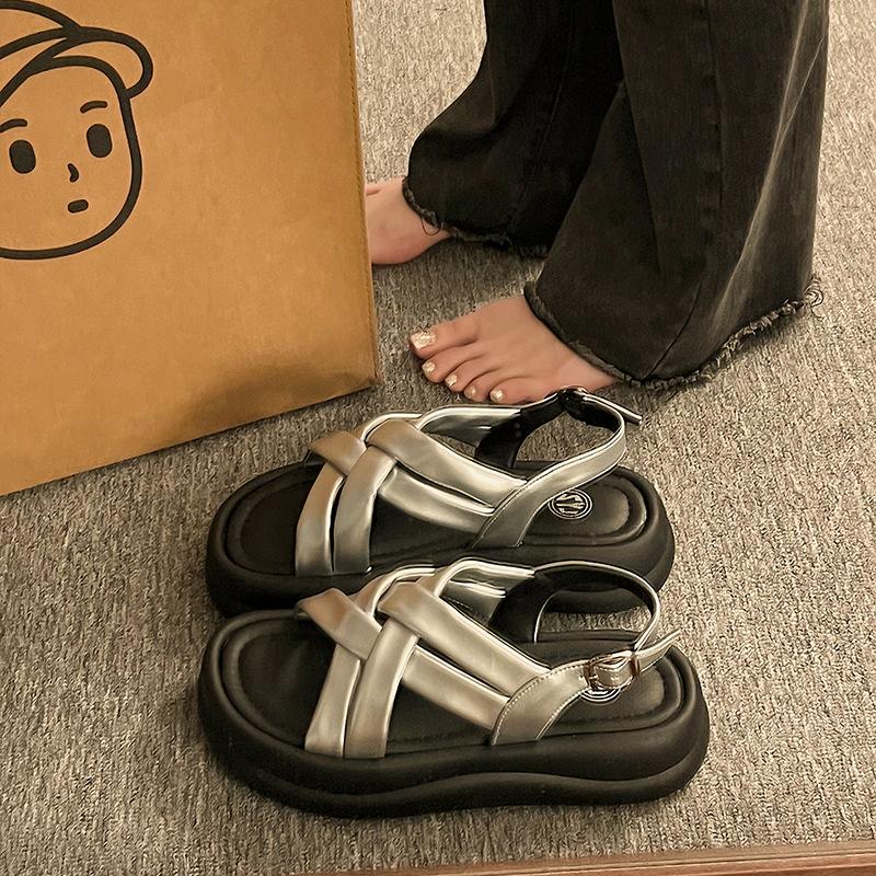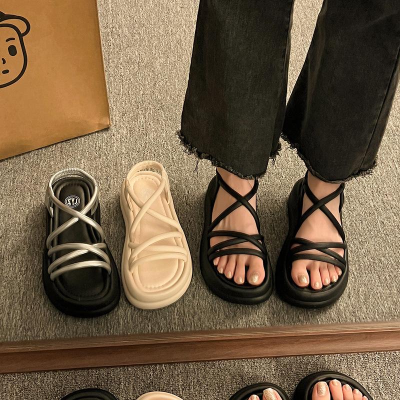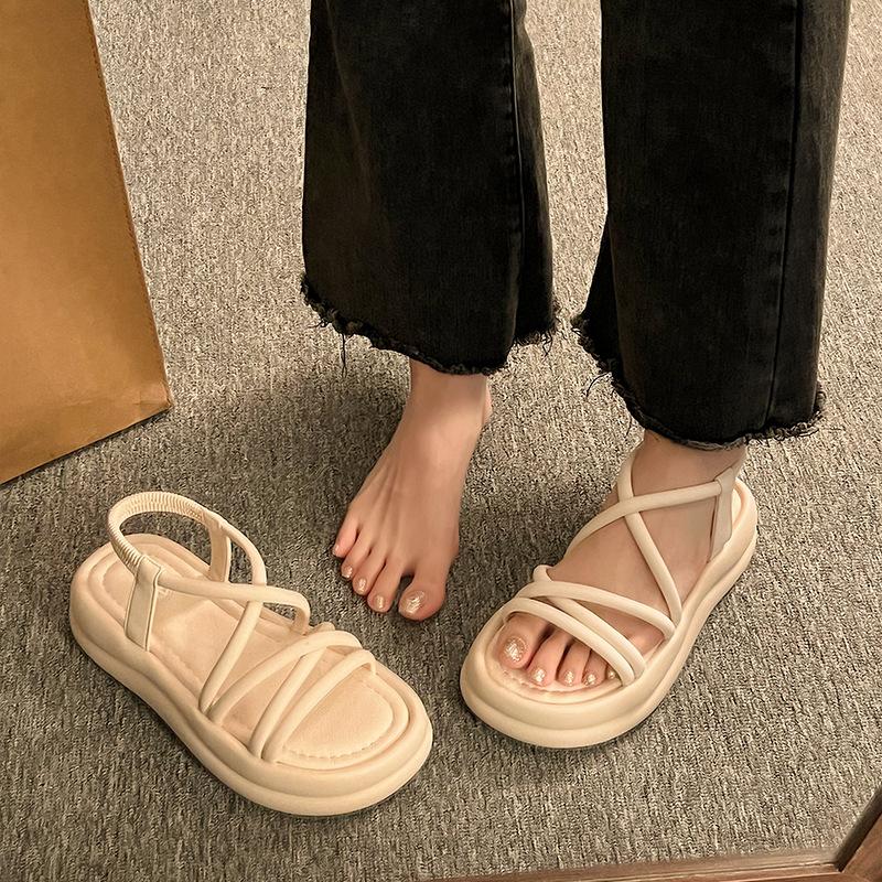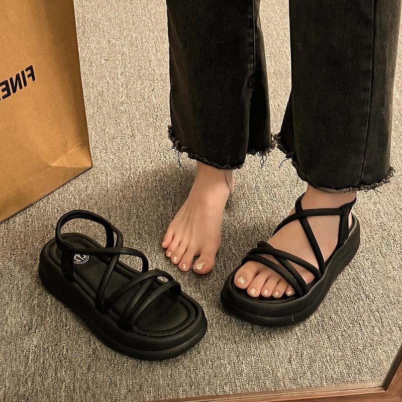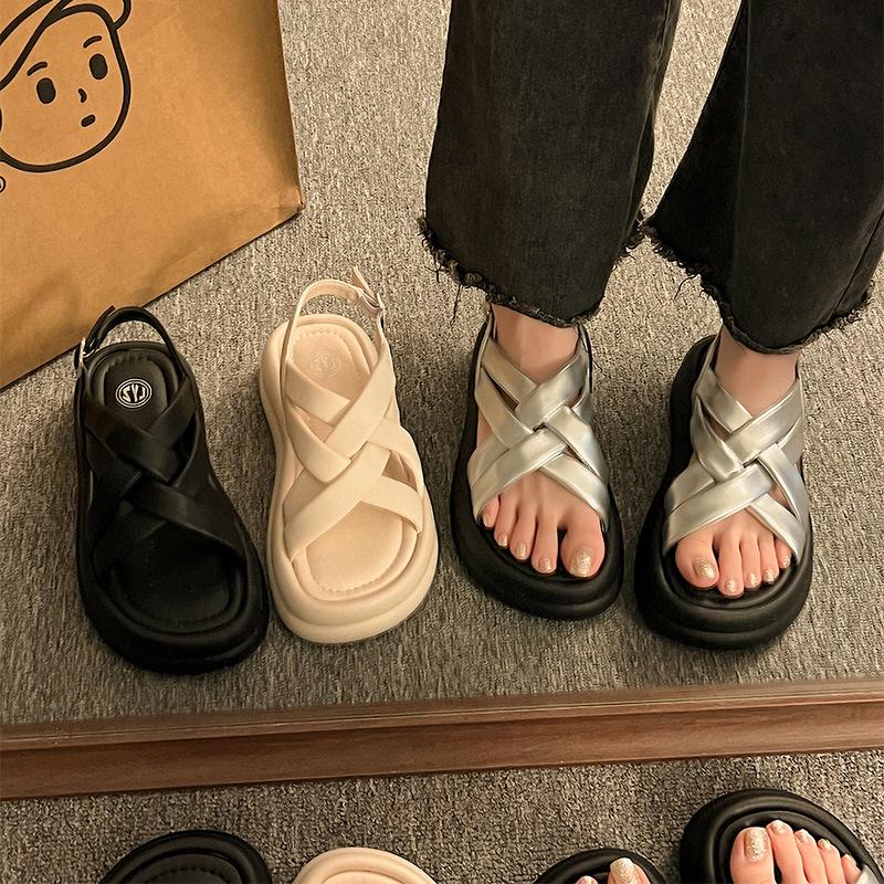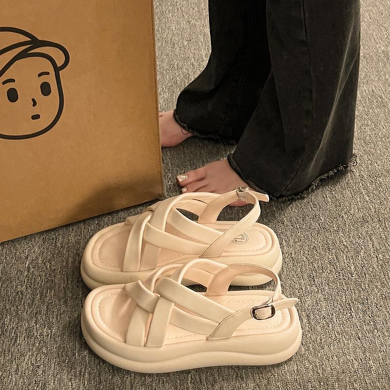 Sandálias Romanas de Tecido para Mulheres 2025 Verão Novo Sandálias de Plataforma de Solado Grosso para Mulheres Modernas com Saia Estilo Fada