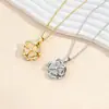 Colar para Mulheres, Estilo Europeu e Americano, Mesmo Estilo Transfronteiriço, Coração Giratório, Flor de Quatro Pétalas, Micro-Incrustado com Diamantes e Zircônia, Colar Elegante e da Moda