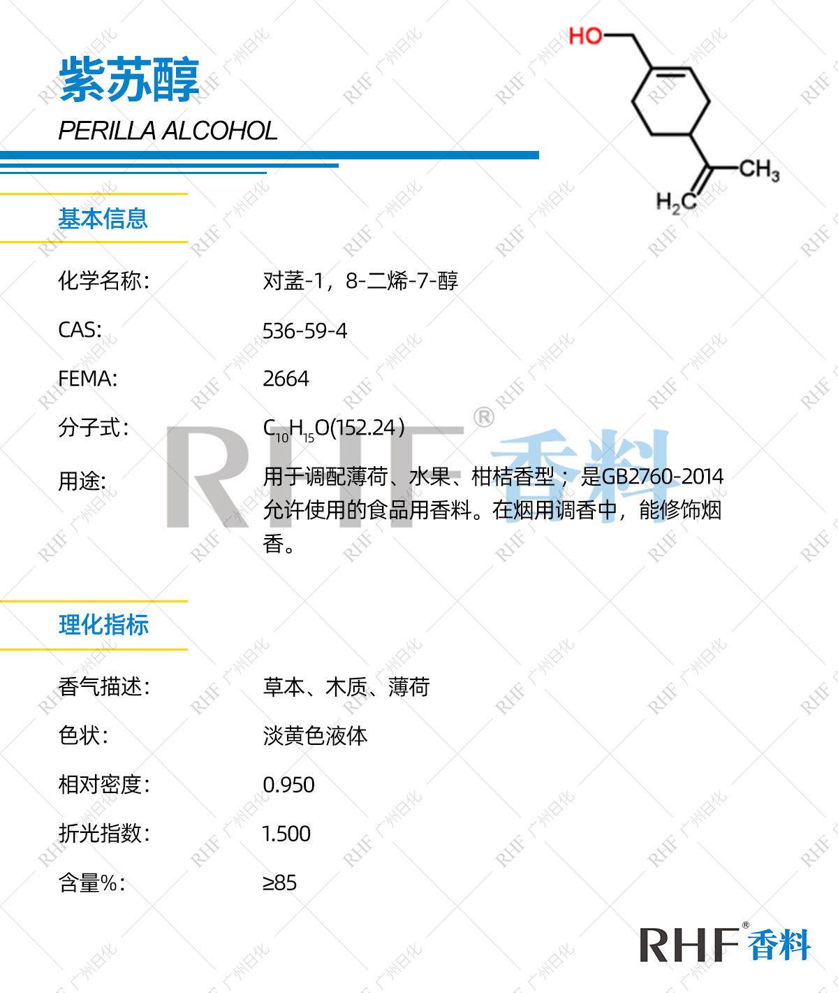 1. O perillaldeído é um aromatizante alimentar permitido para uso sob o padrão alimentar nacional GB2760-2014.