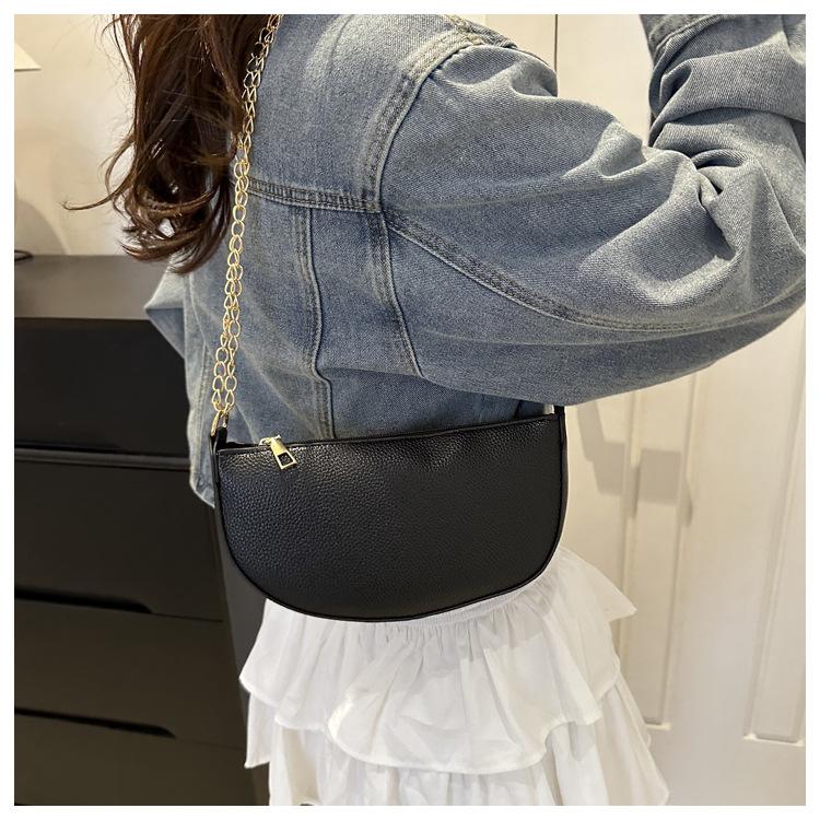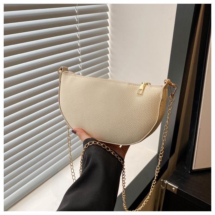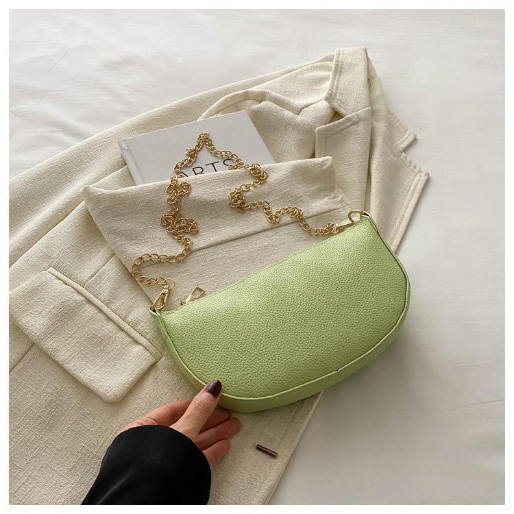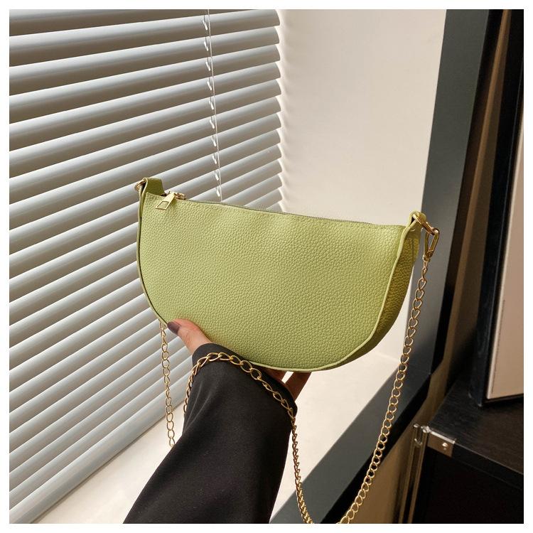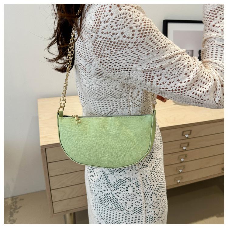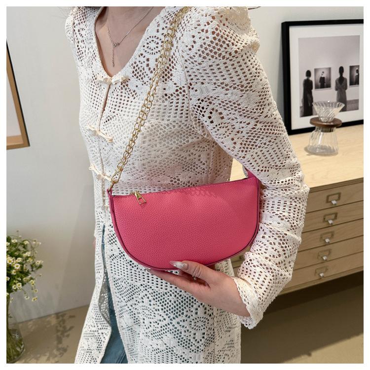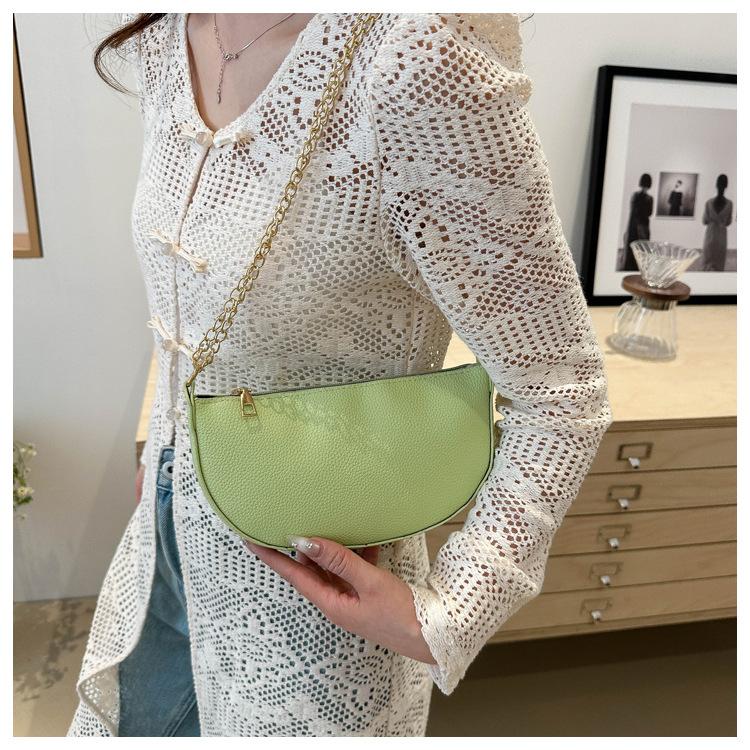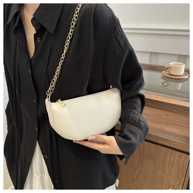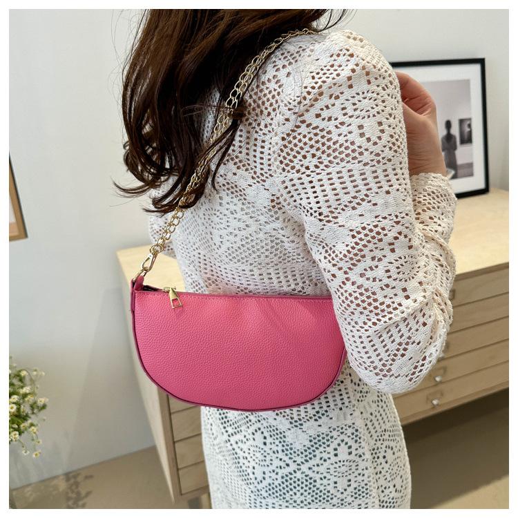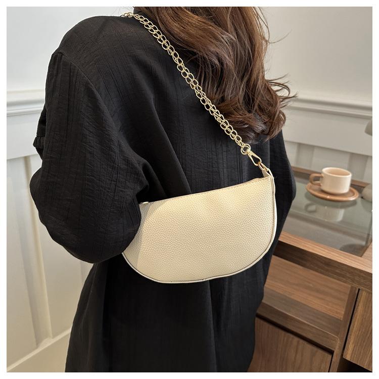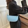 Bolsa Feminina Estilo Hong Kong Novo 2025 Simples Literária Retrô Cor Pura Fresca de Corrente Transversal de Ombro Semicircular Sela