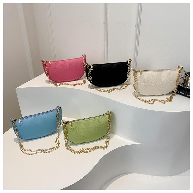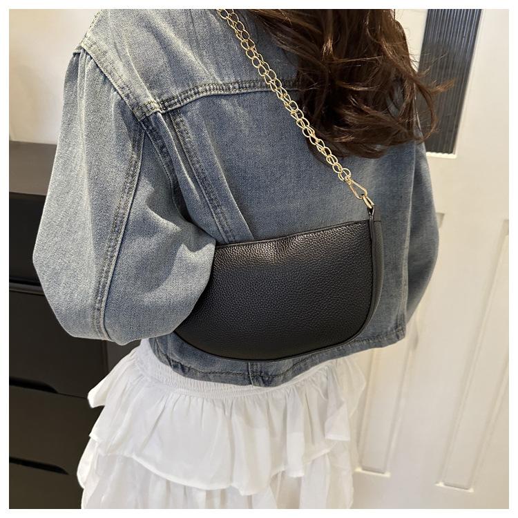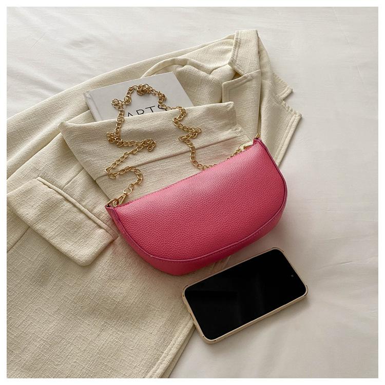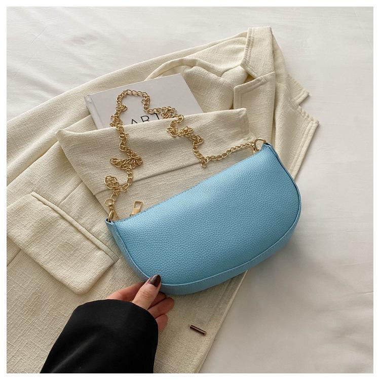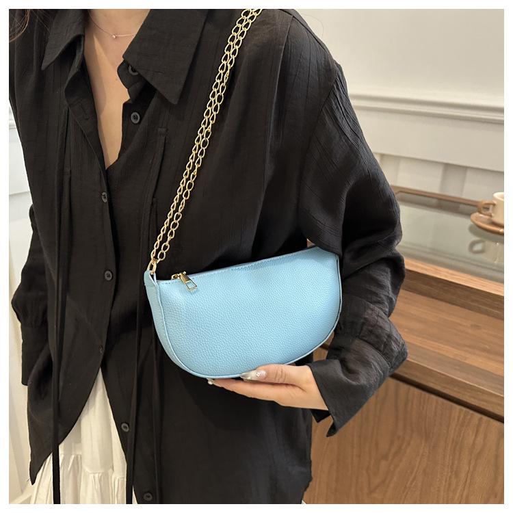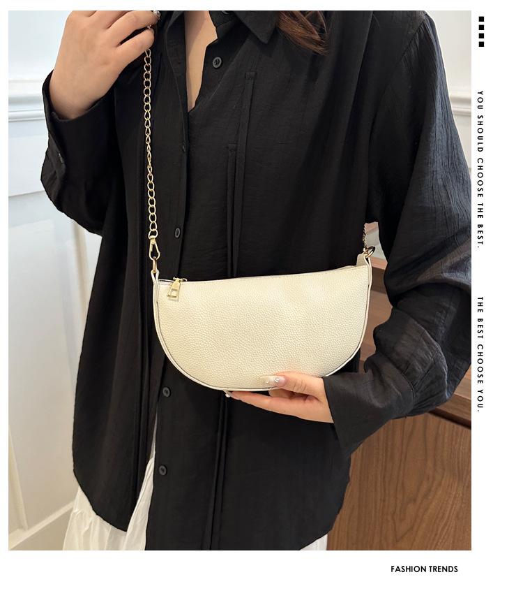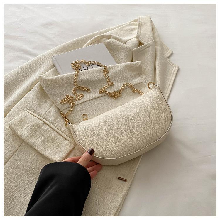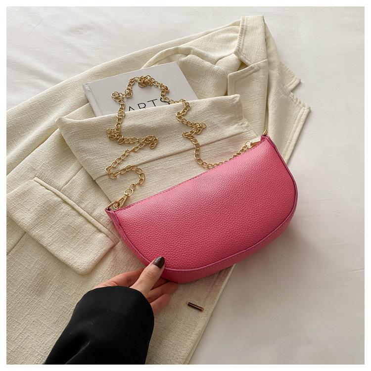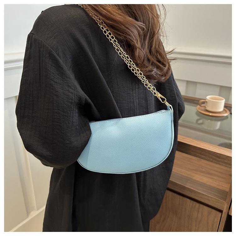 Bolsa Feminina Estilo Hong Kong Novo 2025 Simples Literária Retrô Cor Pura Fresca de Corrente Transversal de Ombro Semicircular Sela