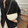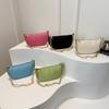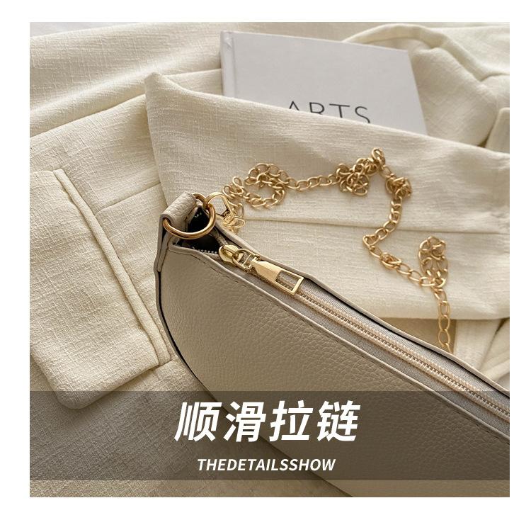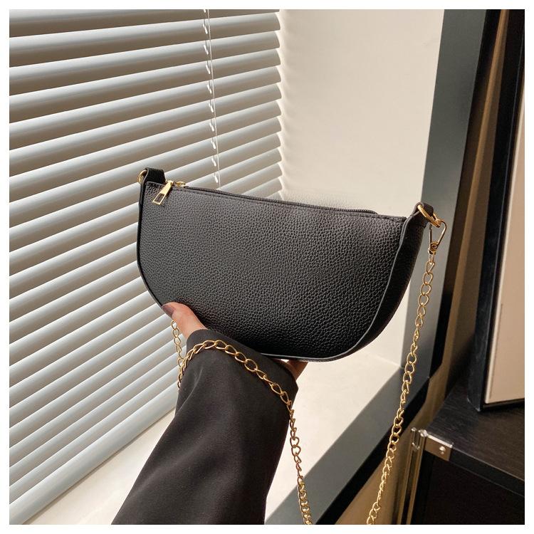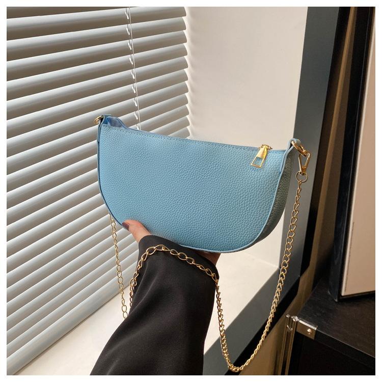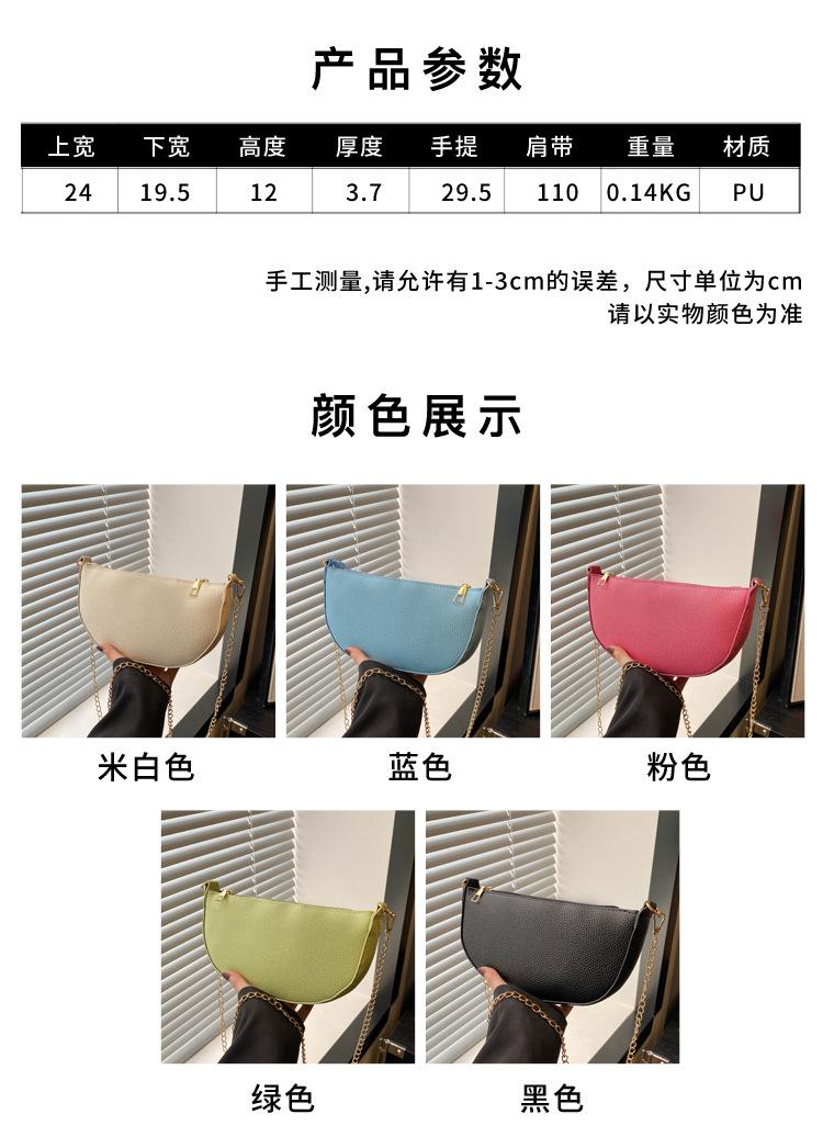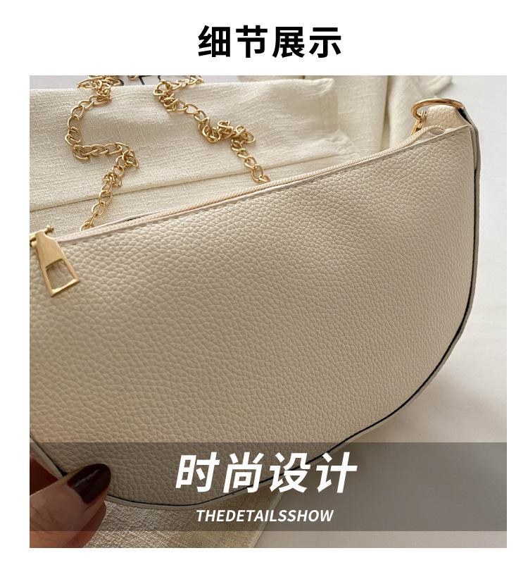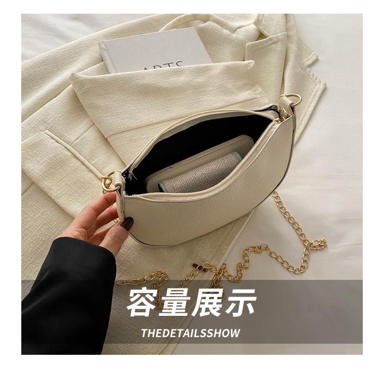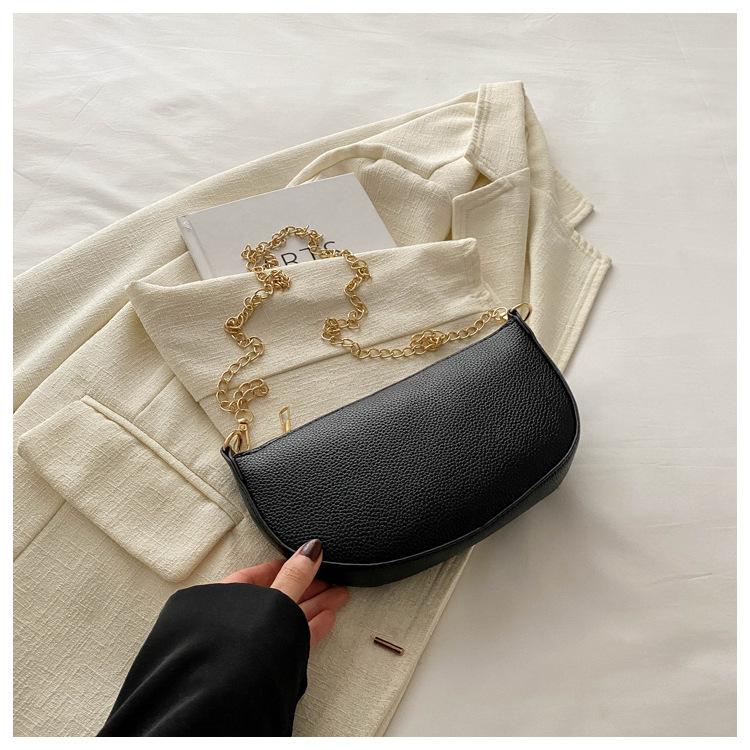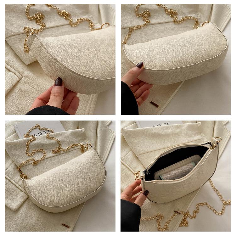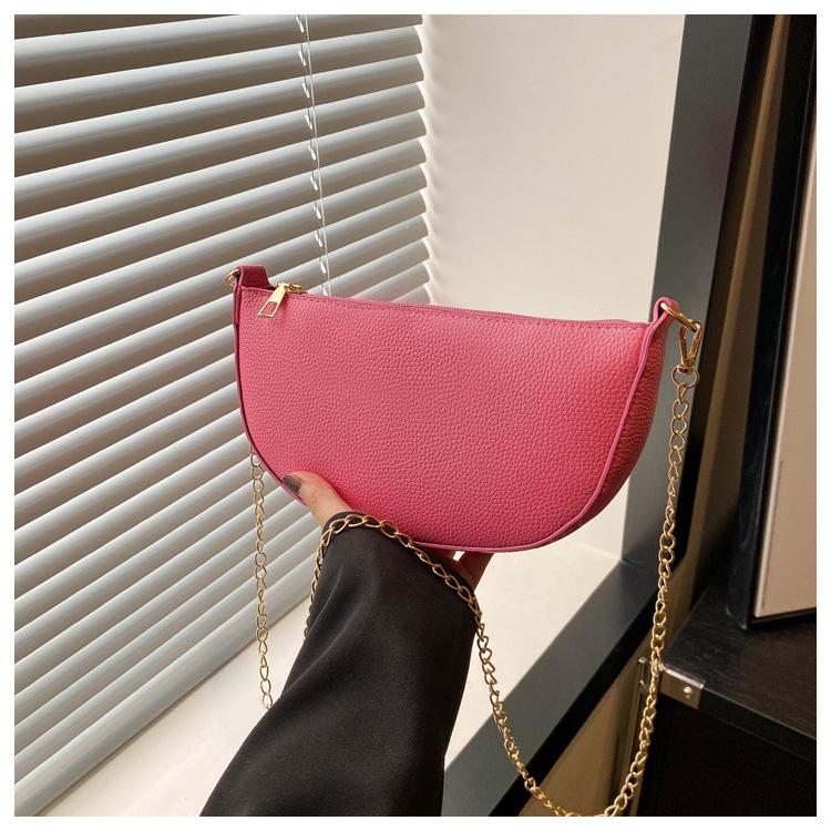 Bolsa Feminina Estilo Hong Kong Novo 2025 Simples Literária Retrô Cor Pura Fresca de Corrente Transversal de Ombro Semicircular Sela