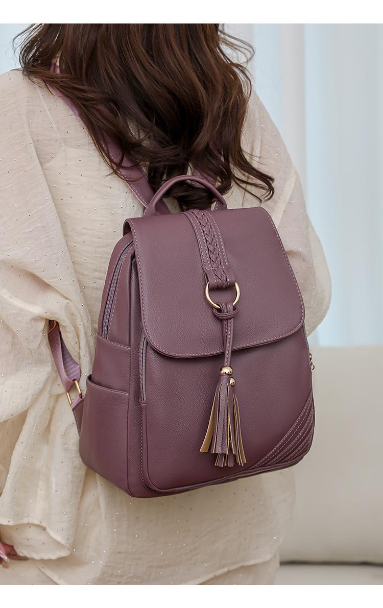 Mochila Mochila de Mujer 2025 Nueva Cuero Genuino Colgante de Borla Mamá Gran Capacidad Bolsa Escolar para Estudiantes Bolsa de Viaje para Exteriores