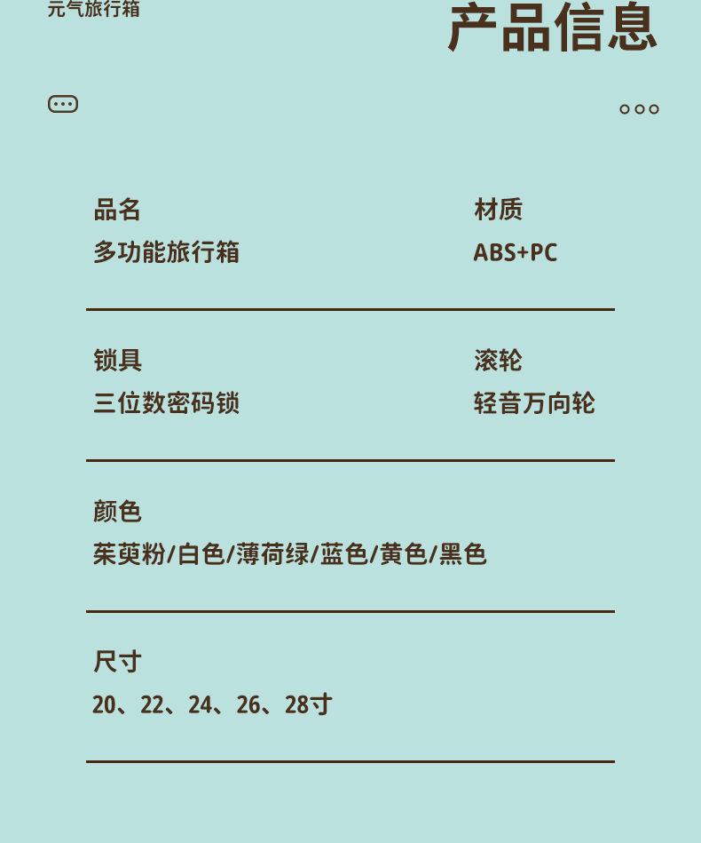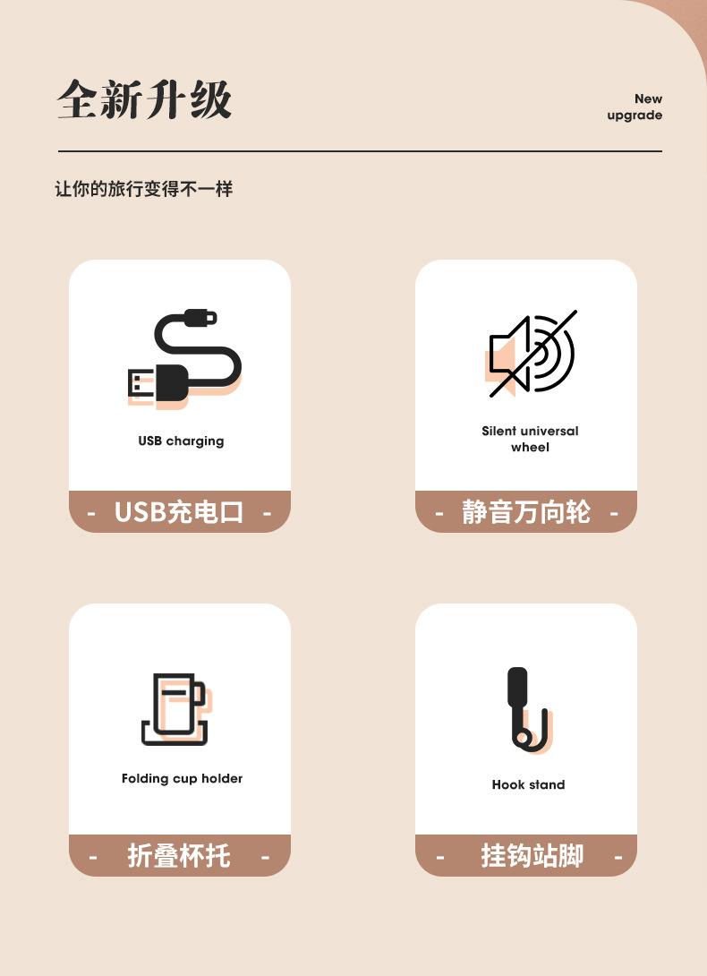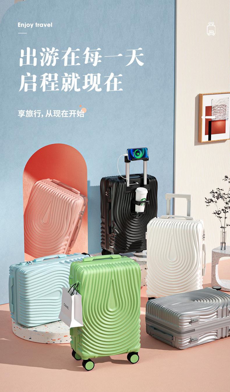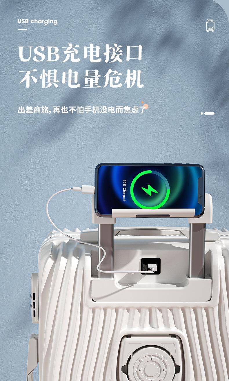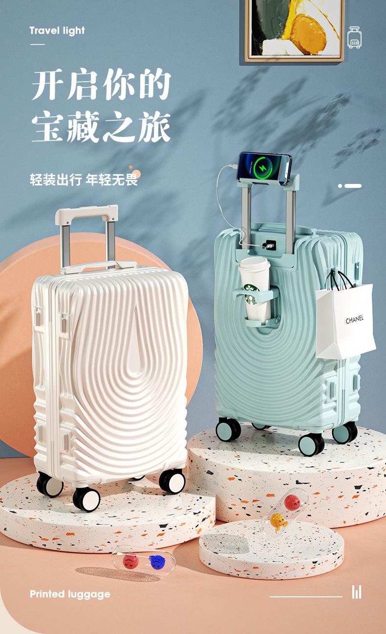 Porta-copos de água de grande capacidade, Mala multifuncional, Mala trolley USB de carregamento bonita, Roda universal, Mala fresca
