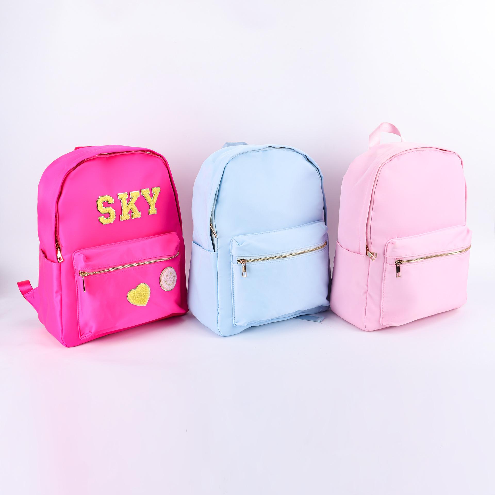 Mochila Escolar Estudantil de Grande Capacidade em Nylon Impermeável Cor Macaron Transfronteiriça Bolsa de Viagem Casual Leve Bolsa de Ombro Ajustável