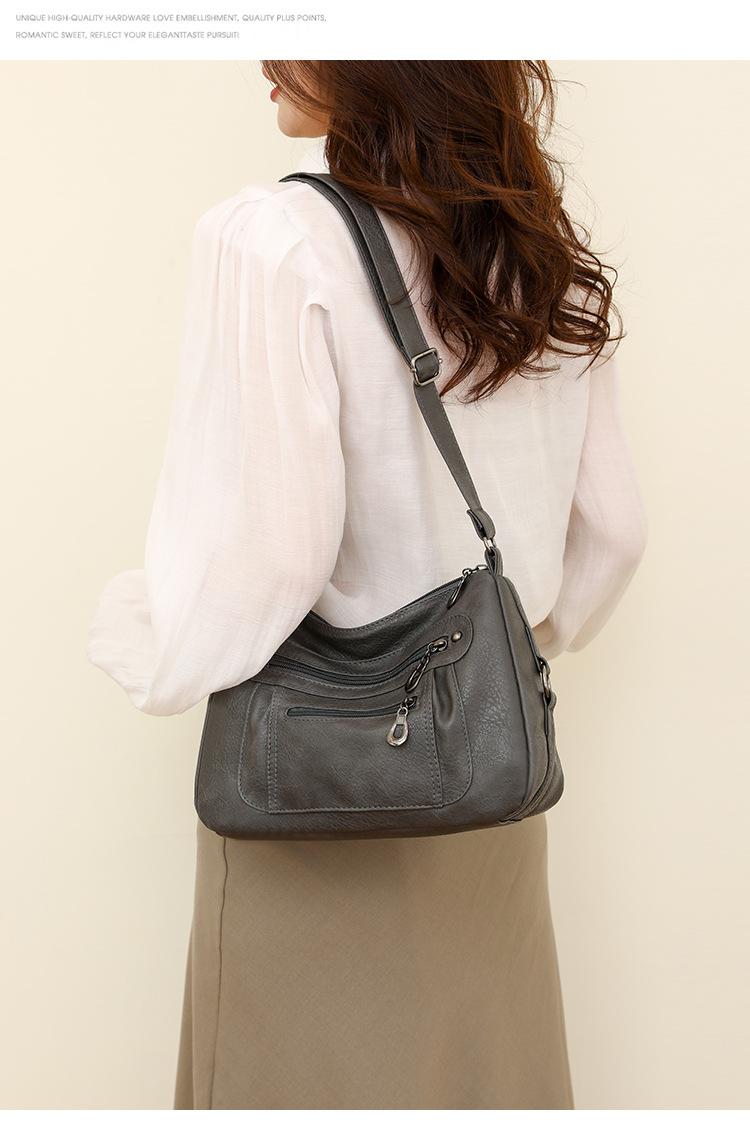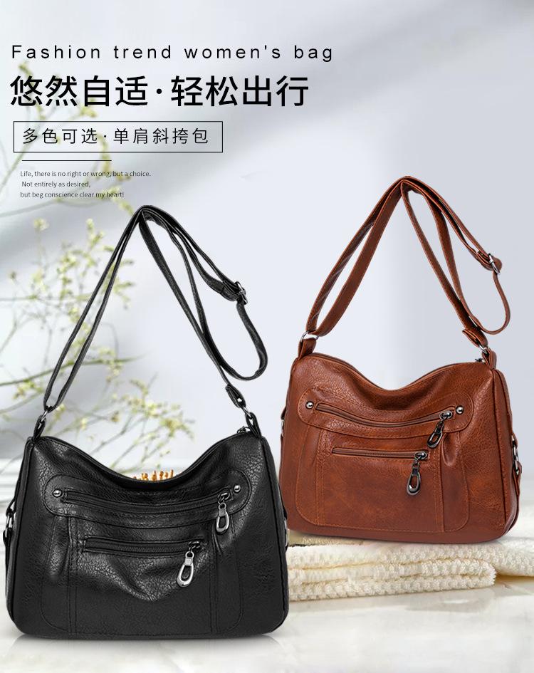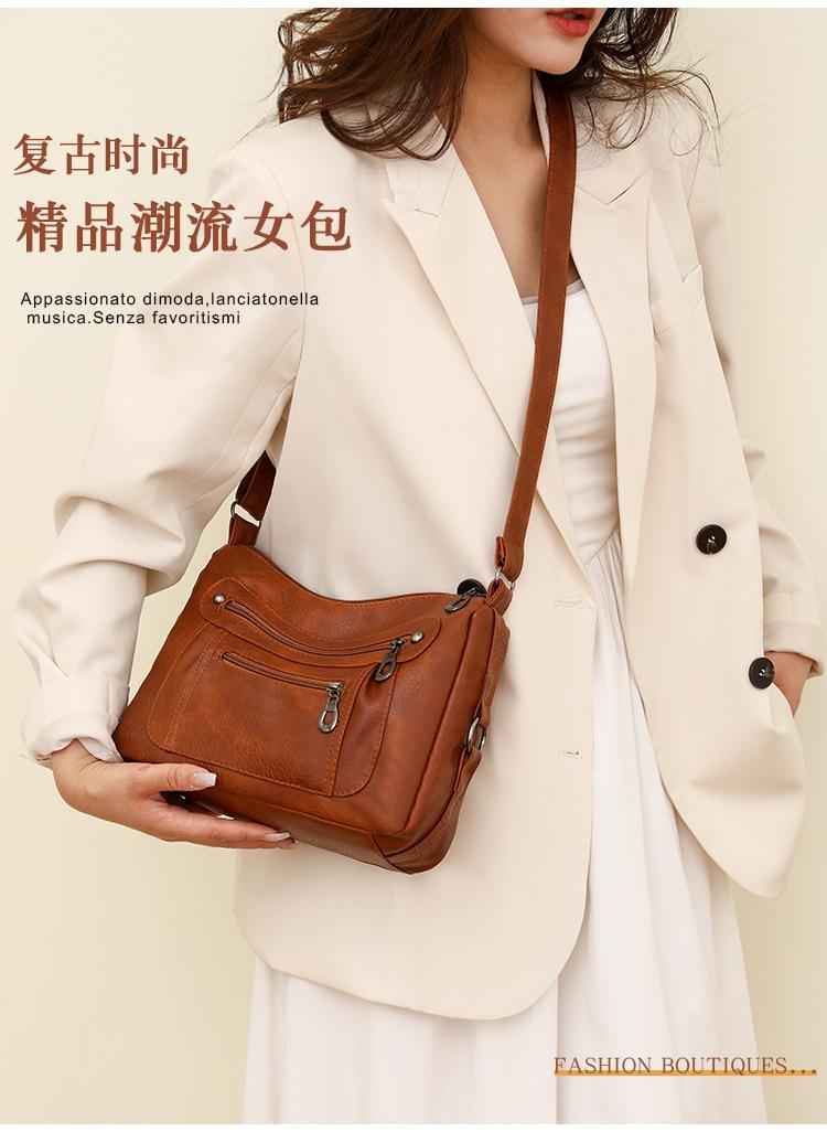 Compre 2023 Nova Textura de Couro Macio Moda Simples Bolsa Transversal Feminina Bolsa de Ombro Retrô da Moda Casual Grande Capacidade Bolsa de Mãe no atacado no Joom.pro